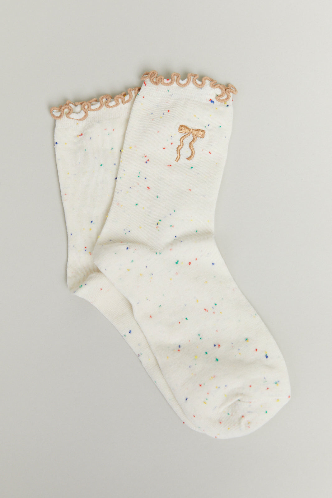 Embroidered Speckled Bow Ruffle Ankle Socks - Yellow