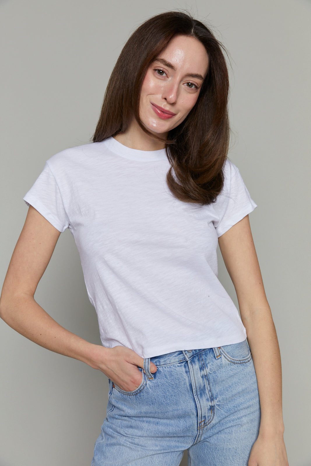 This classic crew neck is a must-have in every closet! This casual wardrobe base-layer essential is made from our vintage-feel Cotton Slub Jersey fabric and features a relaxed, body skimming fit.