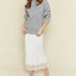 Luxe satin and delicate lace come together in this midi skirt that instantly elevates your look.