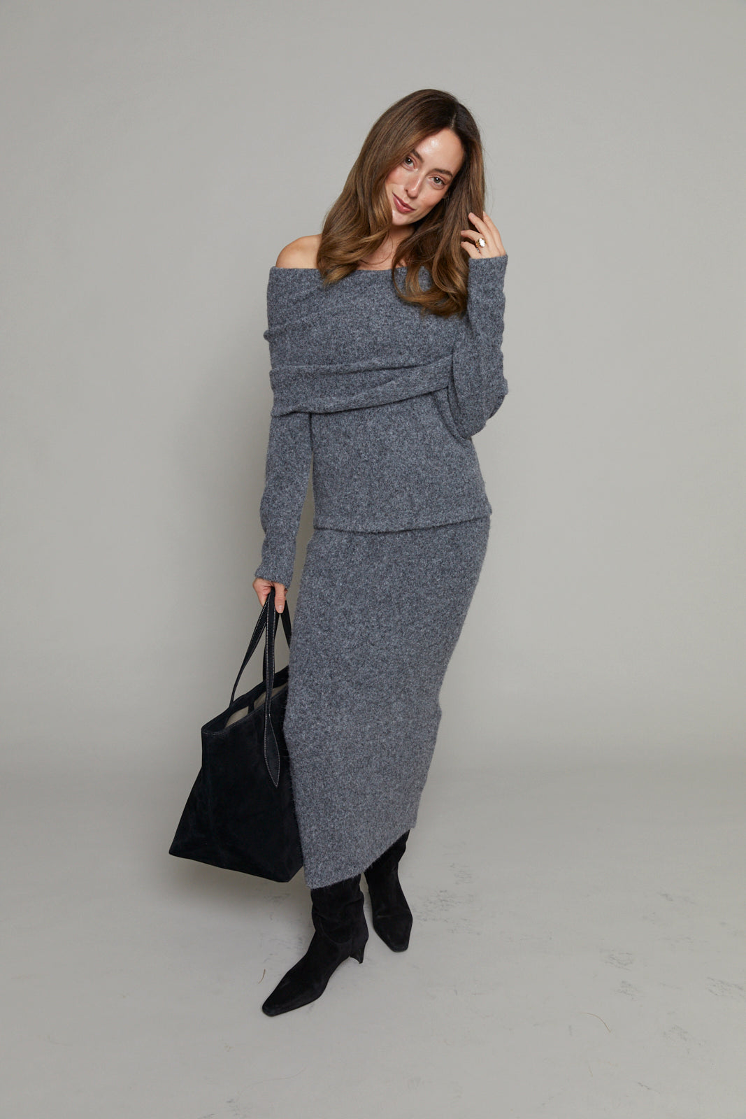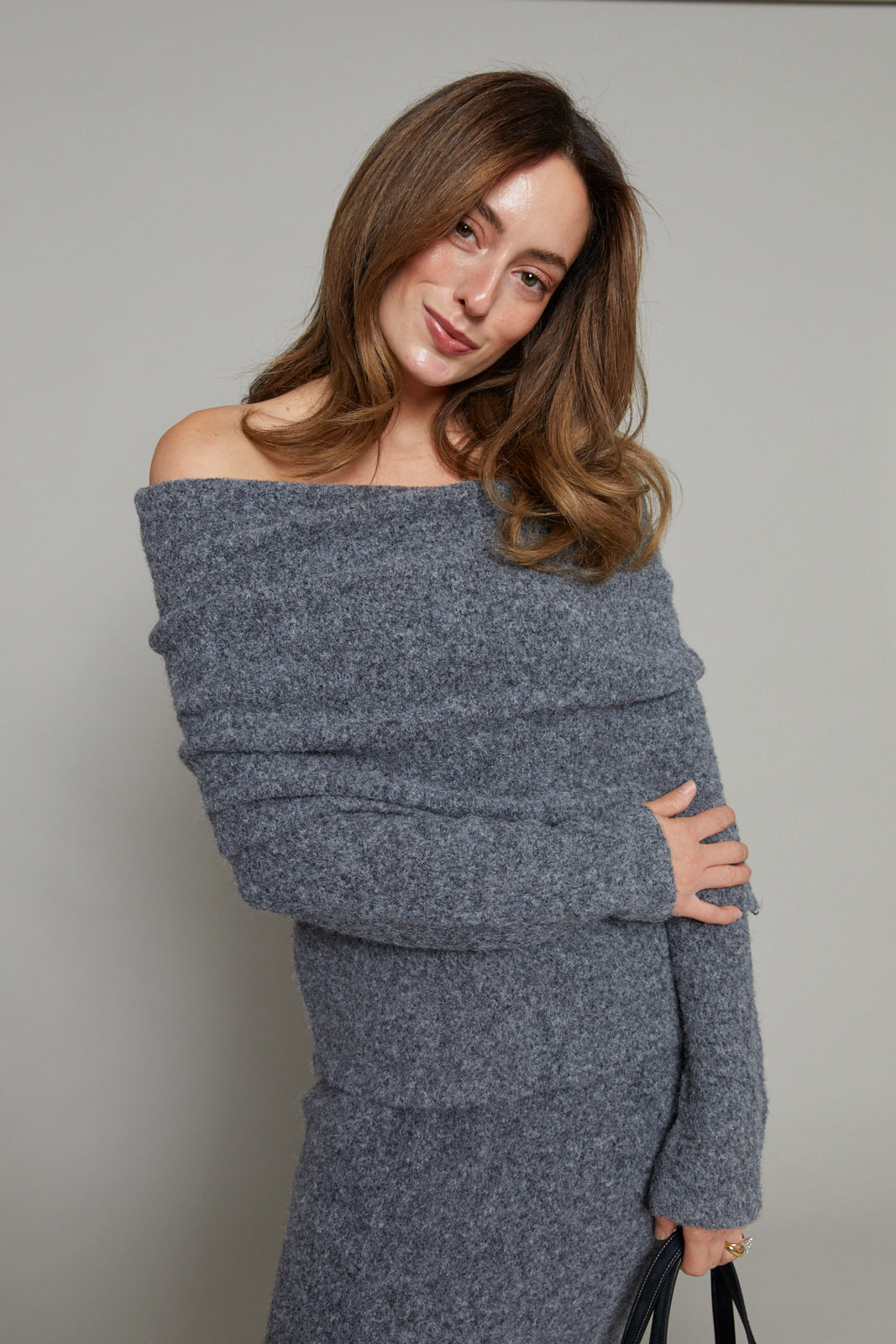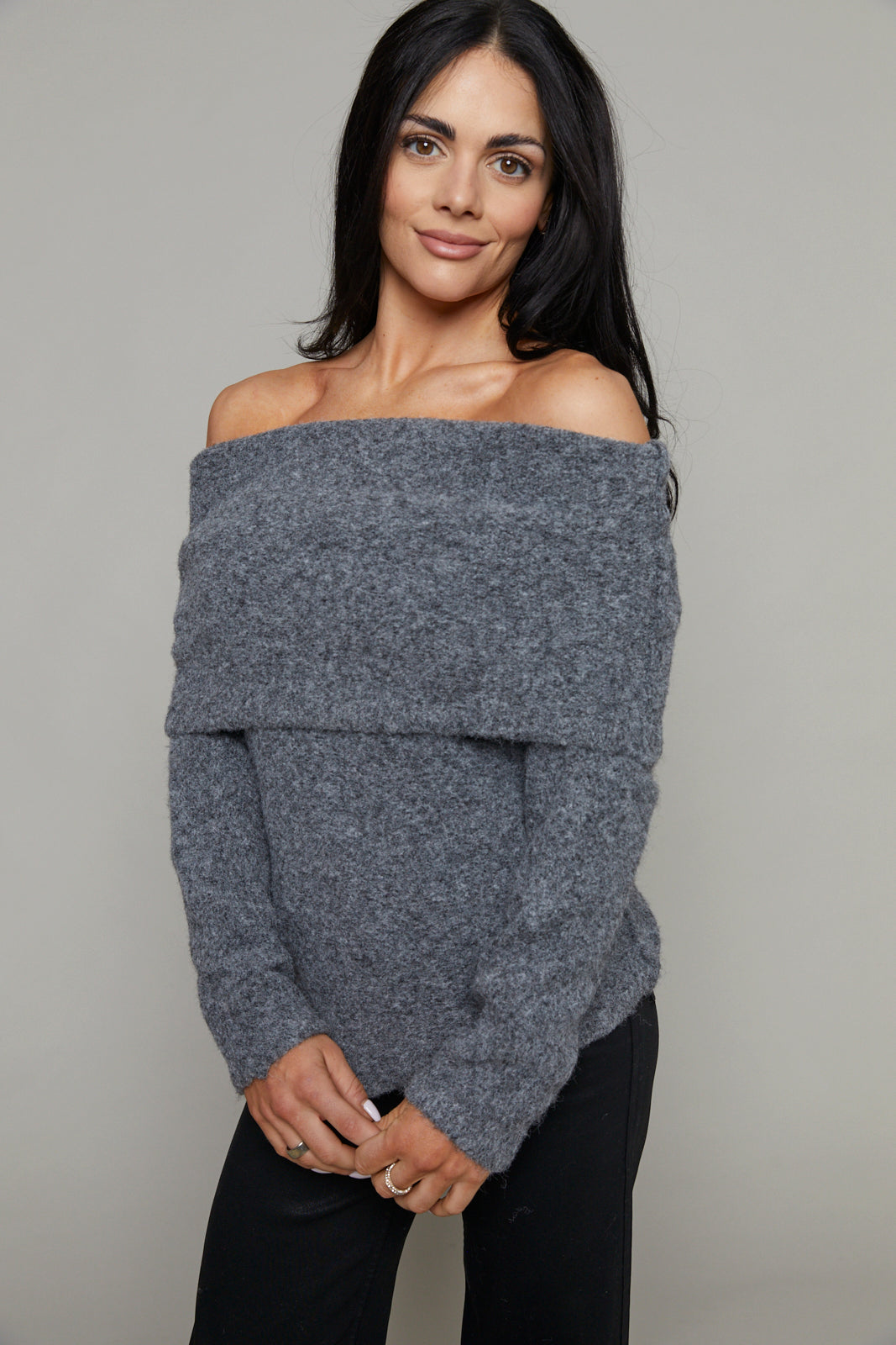Piper Off The Shoulder Knit Sweater - Charcoal