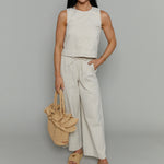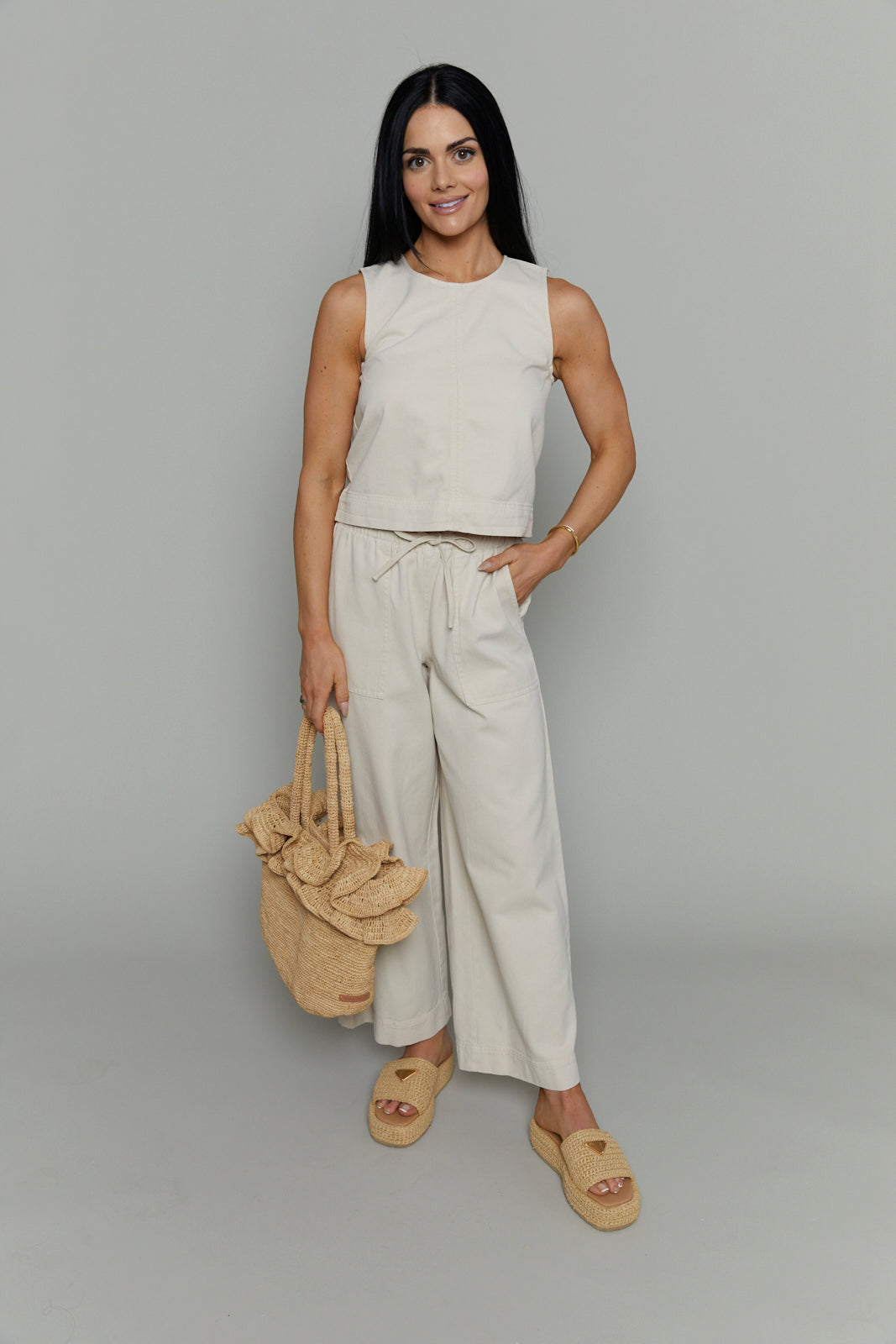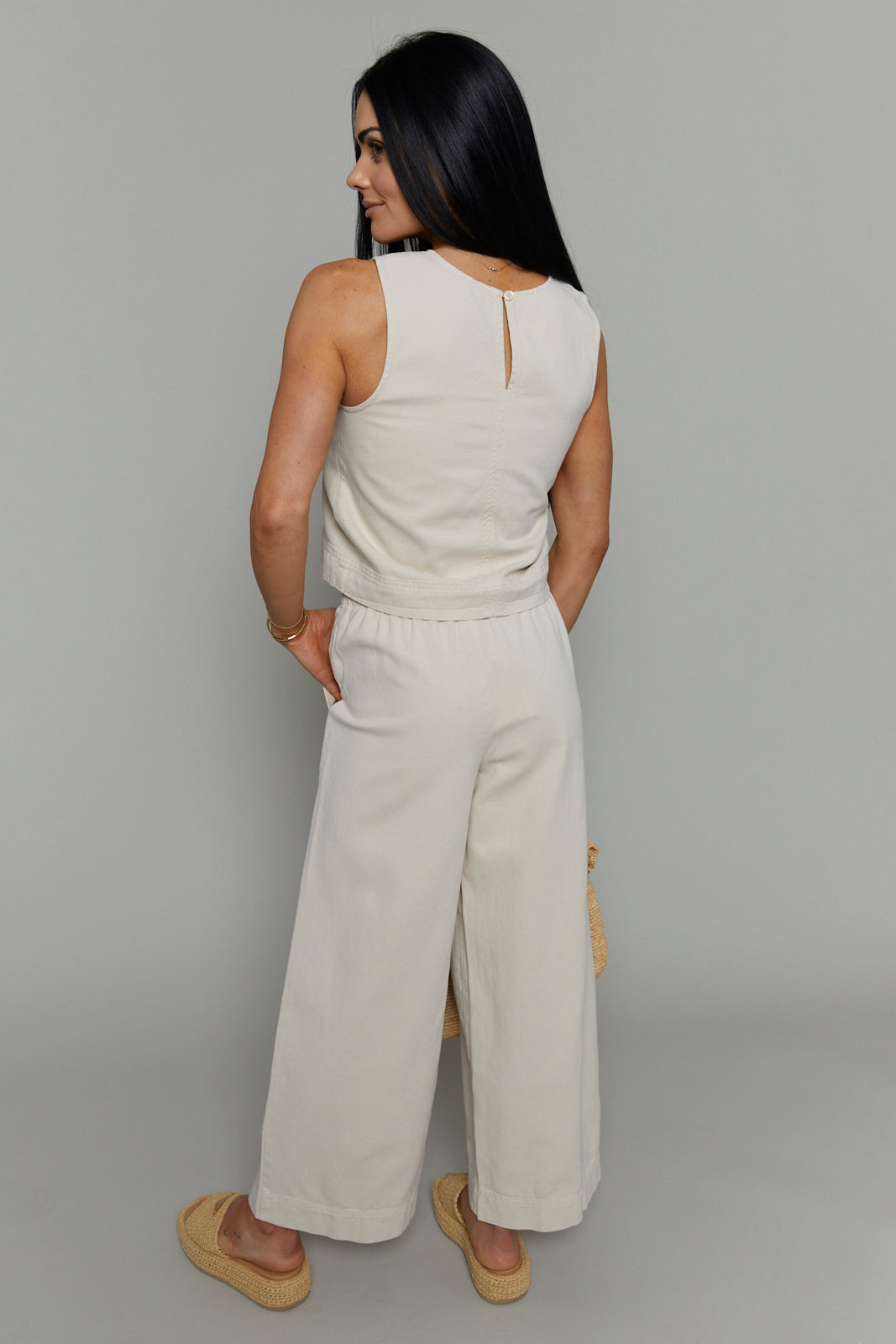 Crafted from a breezy twill fabric, this pant combines an ankle length, wide leg fit with an easy elastic waistband for all-day comfort. The smooth texture make it a travel-ready favorite.