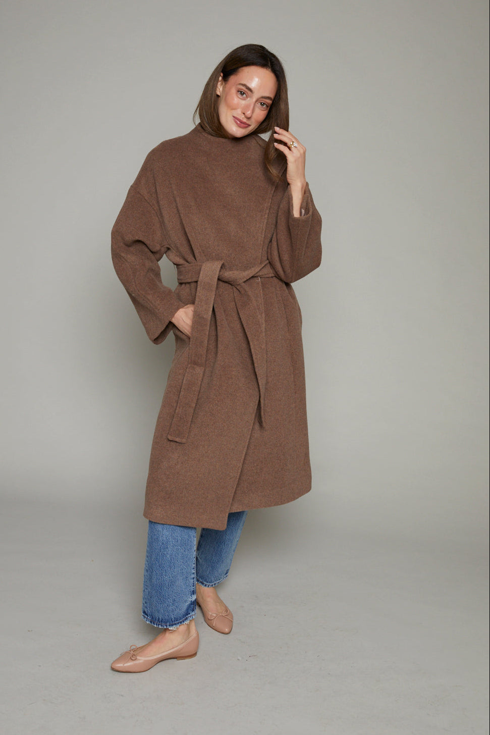 This oversized jacket in a soft weave made from a wool-blend is the perfect layer for workdays and off-duty looks alike, bringing comfort with a refined touch.