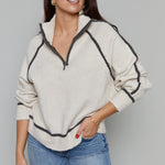 Byron Oversized Half Zip Sweater - Light Heather Oatmeal