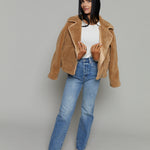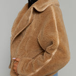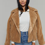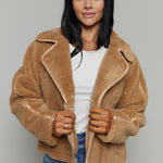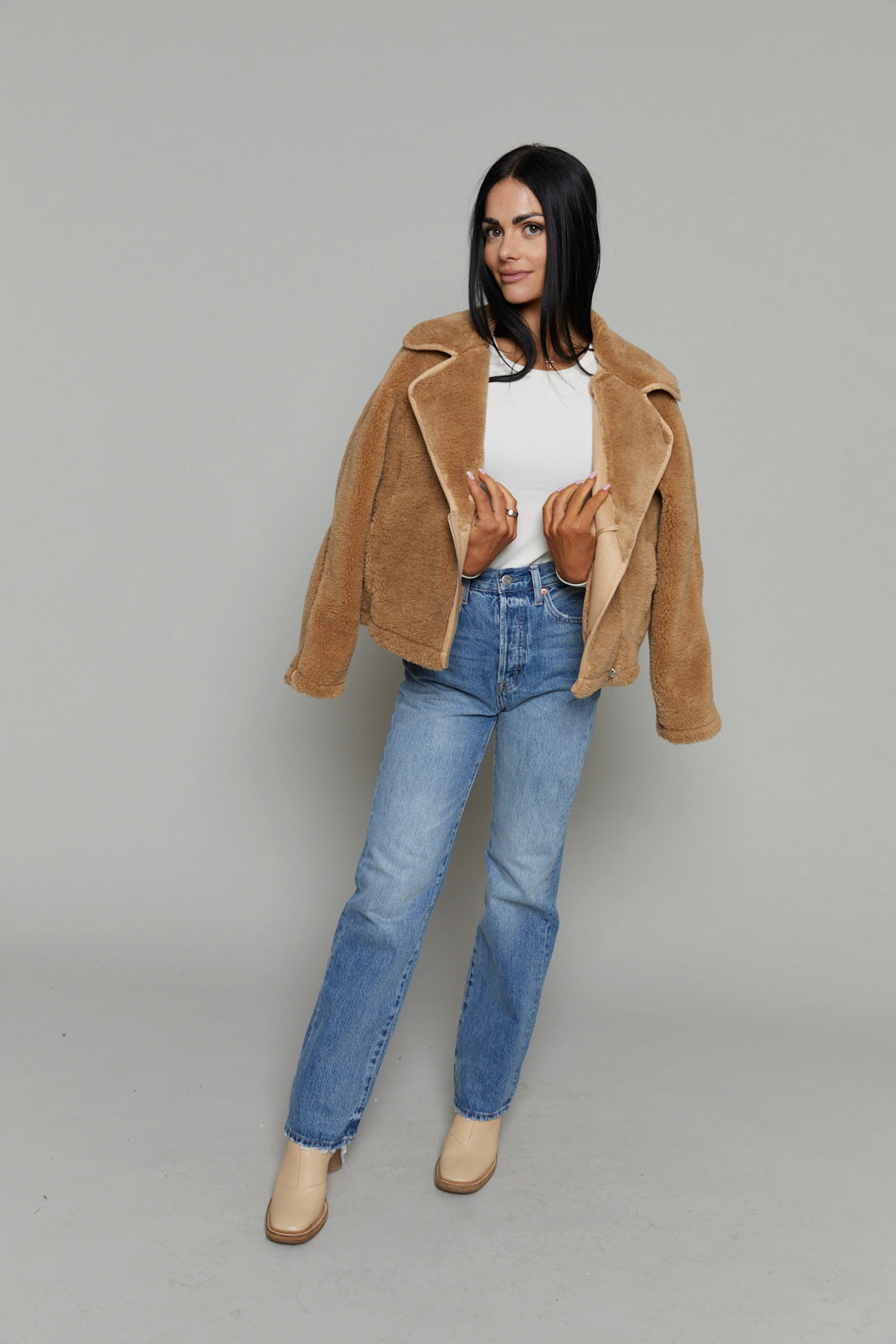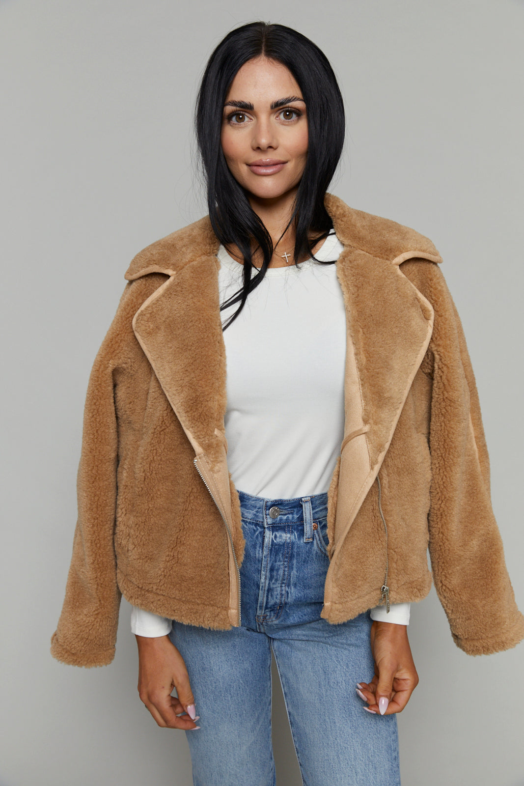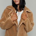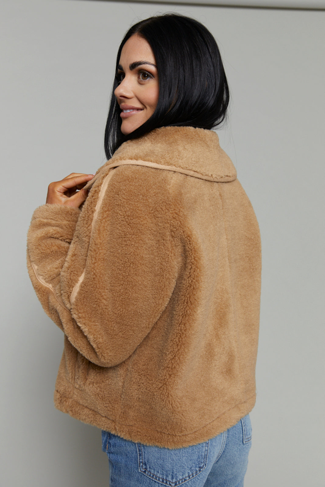 Faux suede and cozy sherpa combine in this cool-weather essential. Designed with moto-inspired lines, raglan sleeves, and contrast trim, it’s equal parts function and standout style.