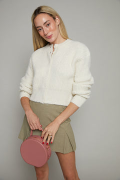 The Meena Tailored Mini Skirt is made from a midweight tailoring fabric which has a smooth handfeel and a subtle visual texture. The silhouette is high waisted and mini in length. Features include clean finish waist with belt loops, box pleats and invisible zipper. This style is fully lined.