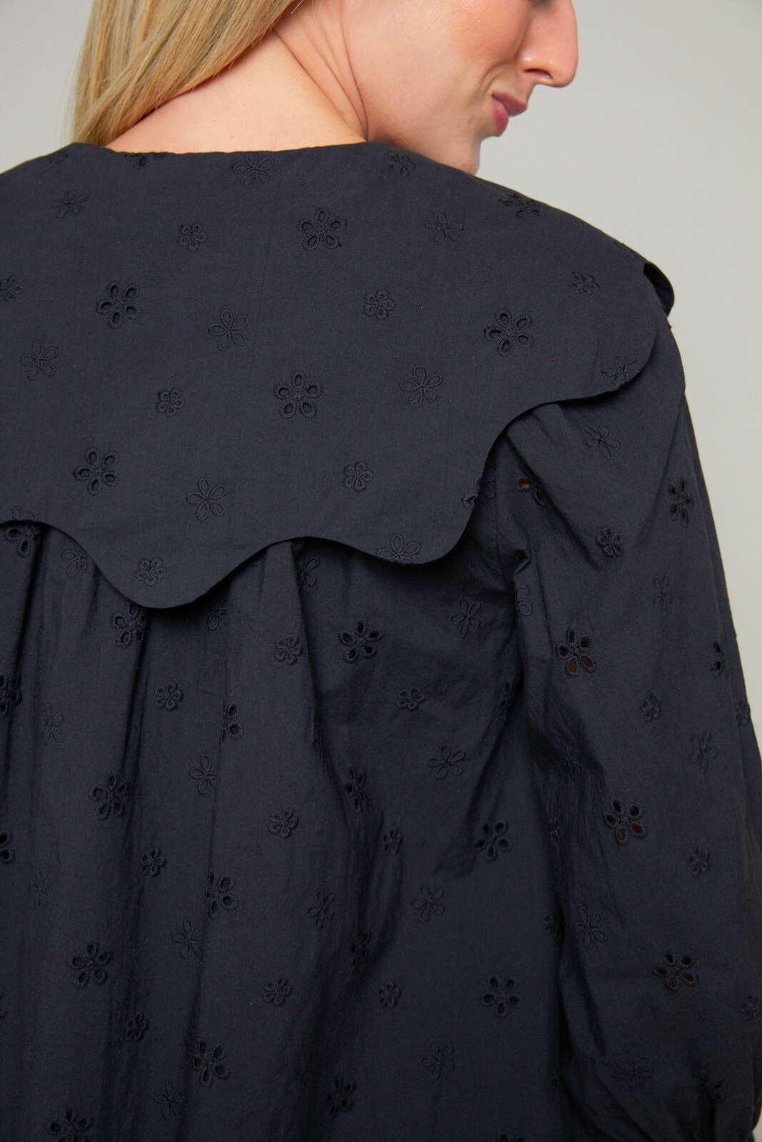 Sylvie Scalloped Collar Eyelet Mini Dress - Black