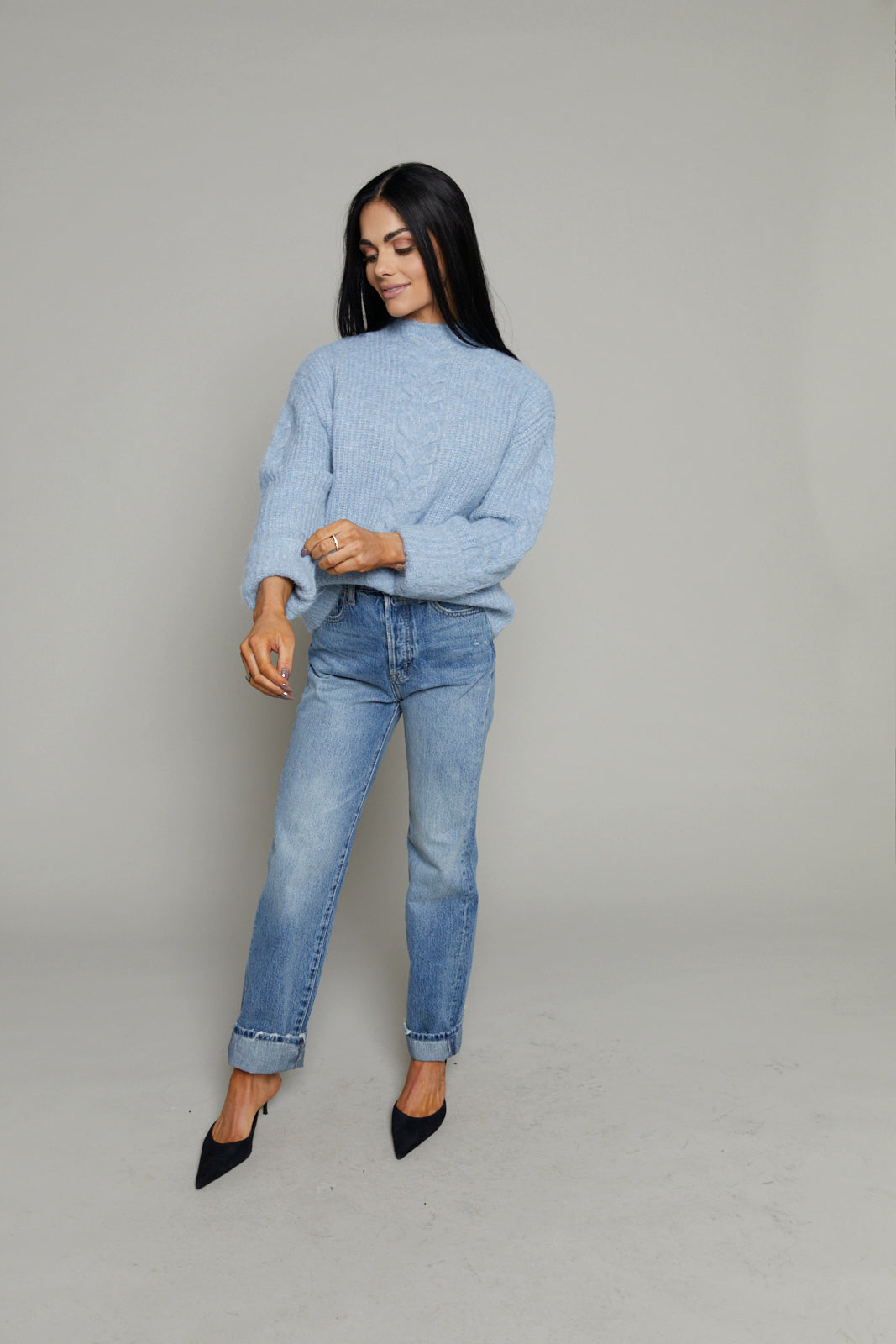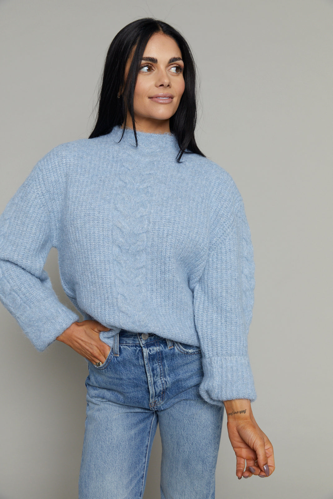 Tammy Cable Knit High Neck Sweater
