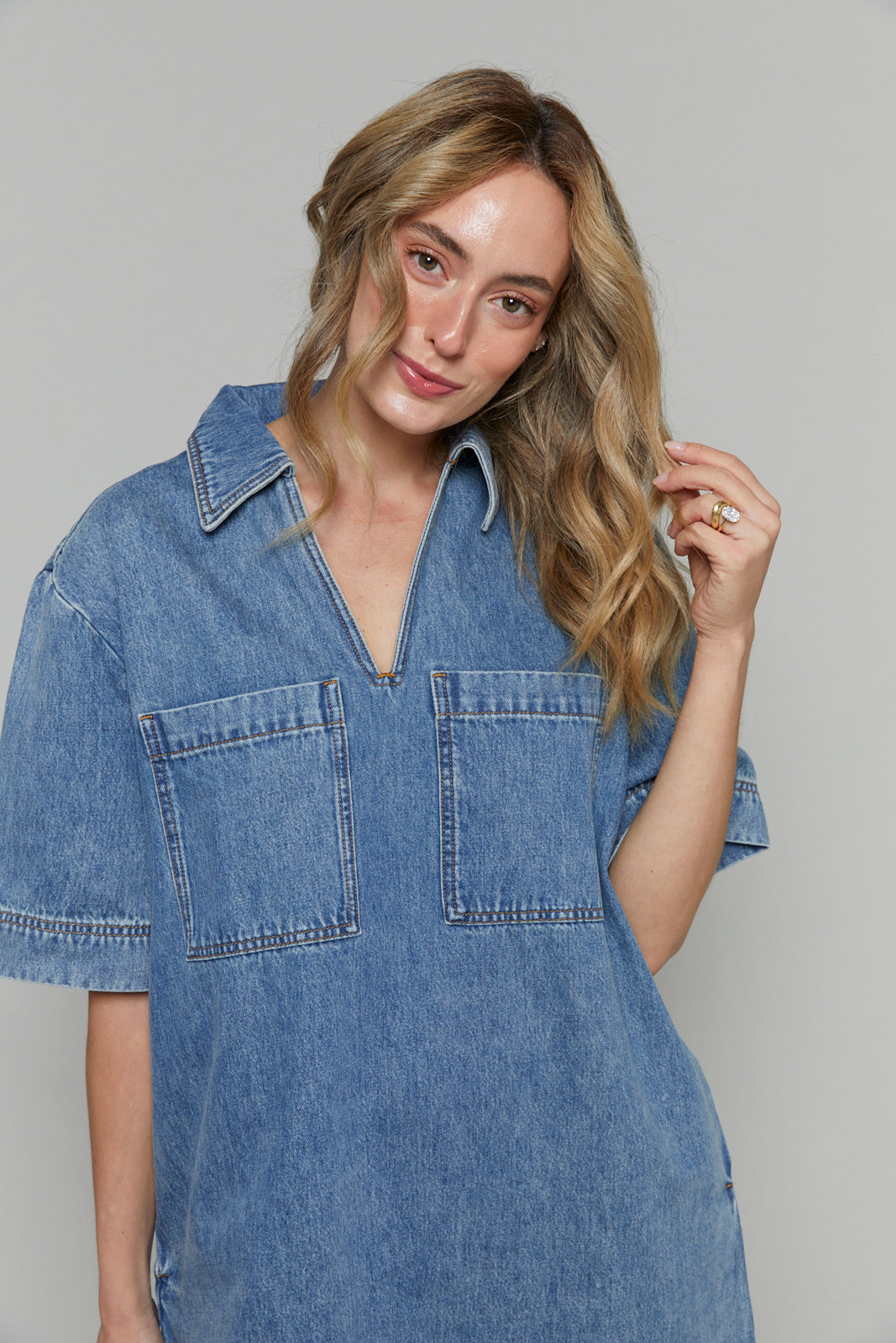 This style is fitting true to size for an intended oversized, relaxed fit. If you are between sizes, we recommend sizing down. Model is wearing a small.
