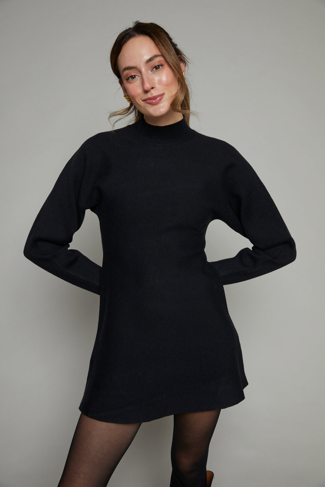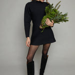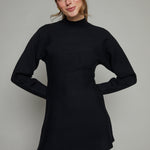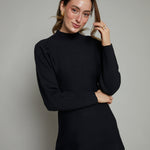 Mock Neck Peplum Sweater Mini Dress with Long Sleeves