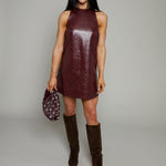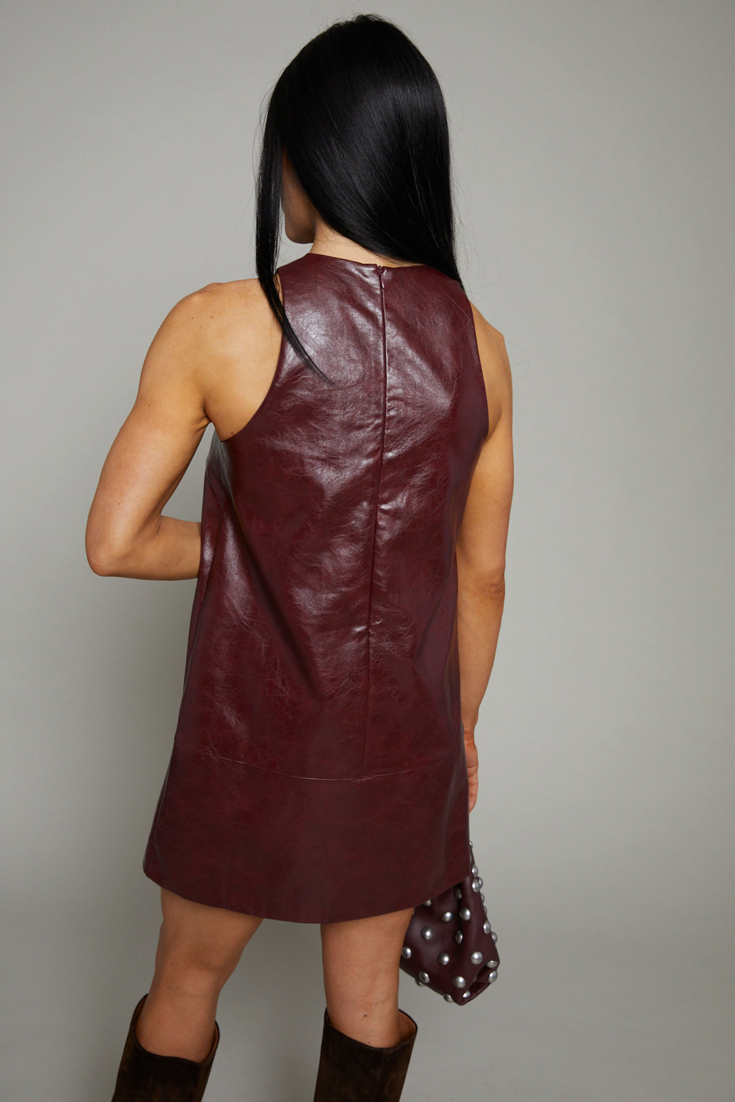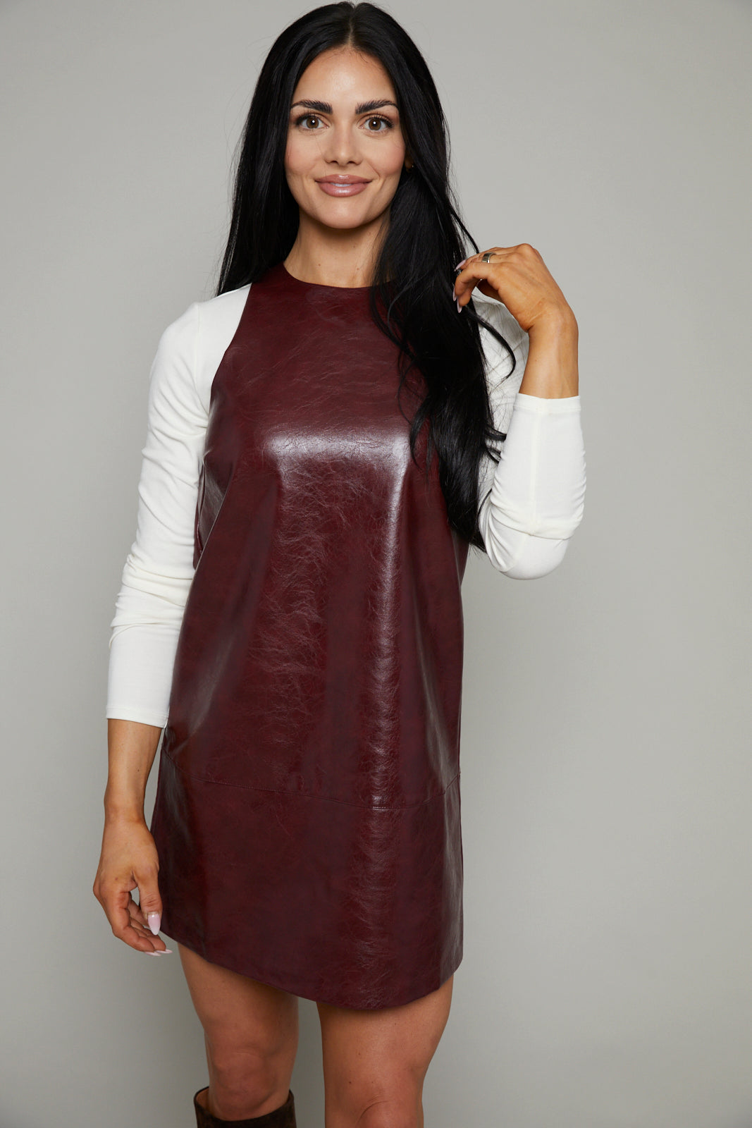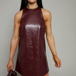 Crafted from smooth faux leather, this dress hugs your silhouette, accentuating your curves while offering a bold, modern vibe. Perfect for nights out or special occasions.