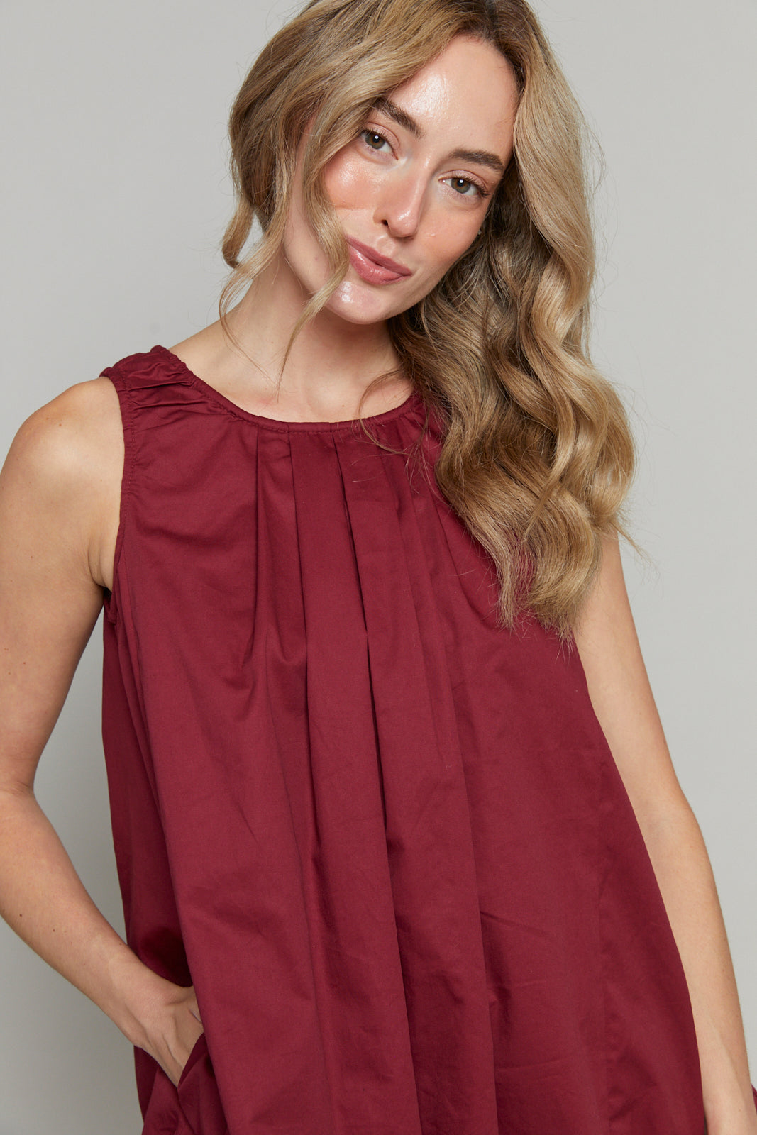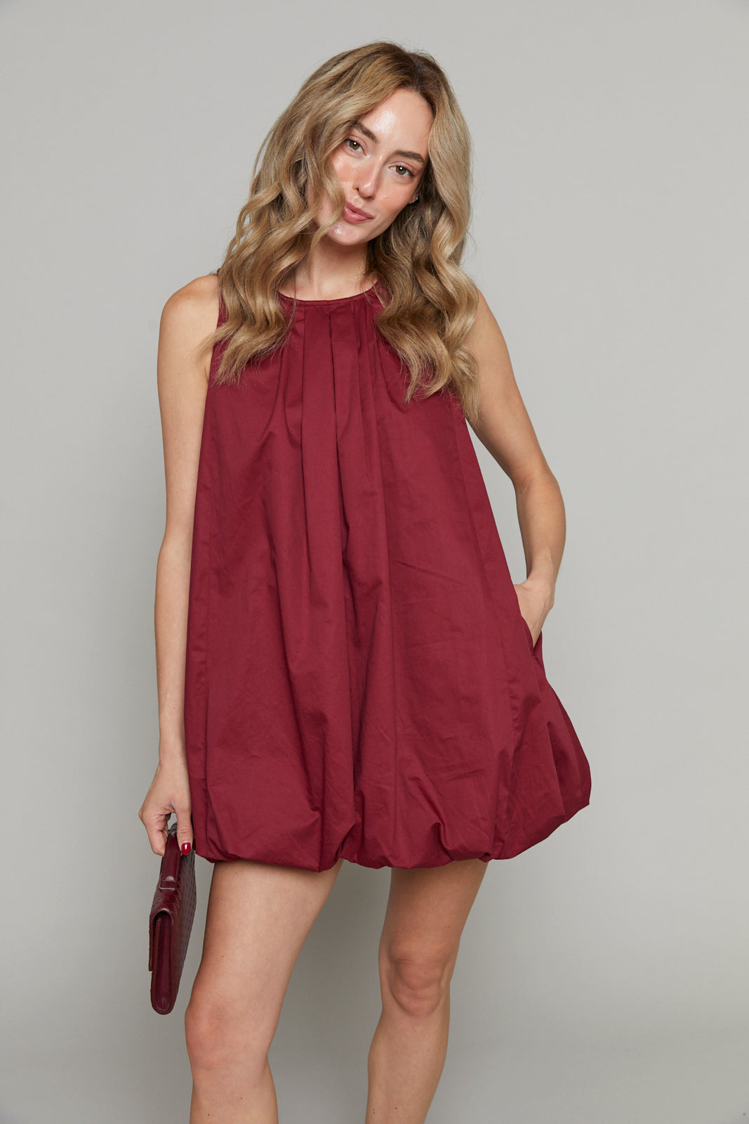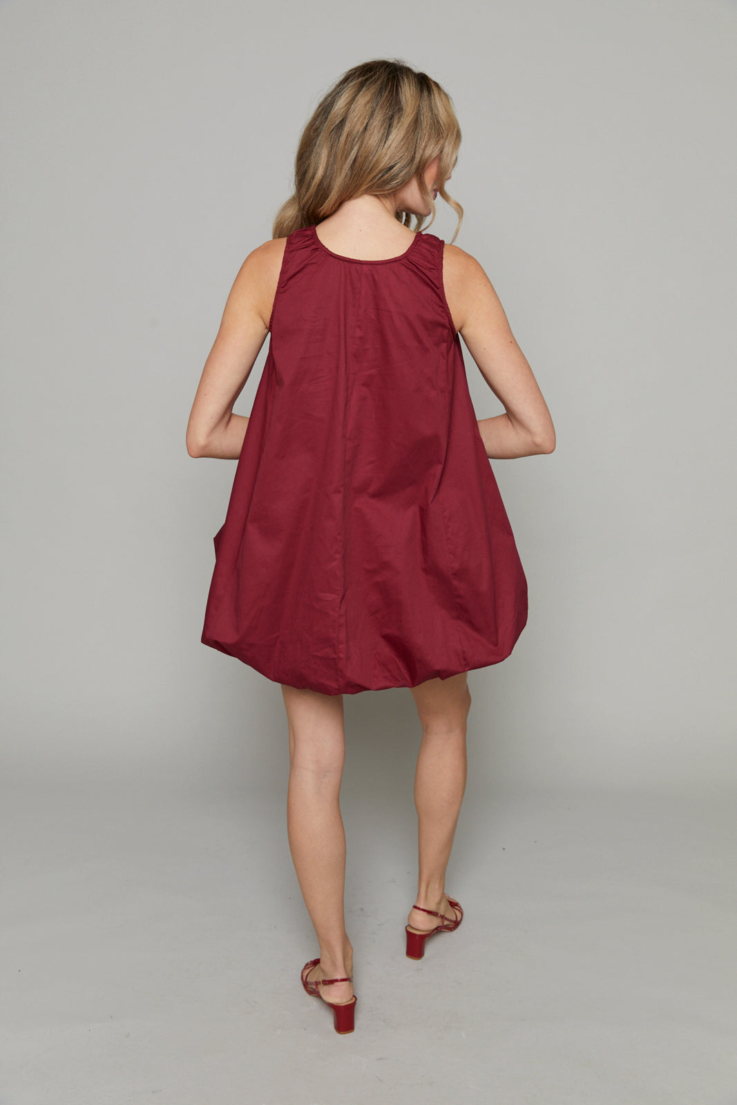 Crafted from crisp poplin fabric, this dress balances structure and softness with its playful bubble hem that adds a subtle volume to your silhouette. Perfect for sunny afternoons or evening gatherings, it moves gracefully with you, blending comfort and style.