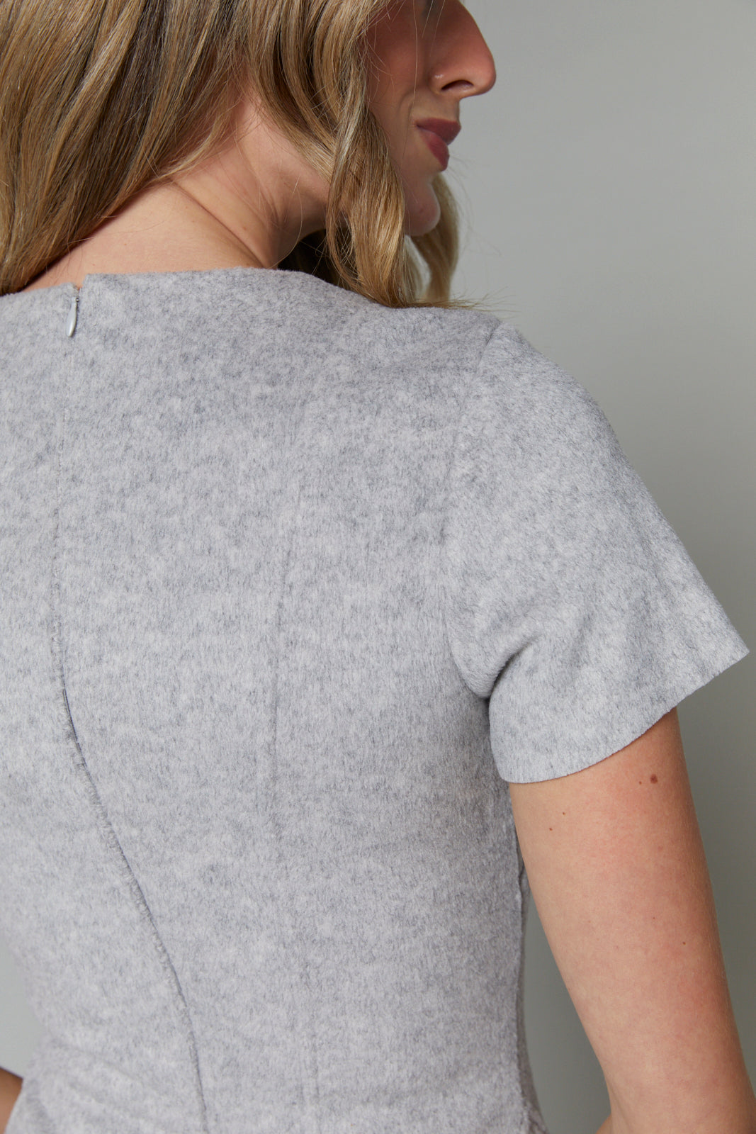 Its flattering silhouette hugs your waist before flowing into a playful flare, creating a timeless shape that moves with grace.