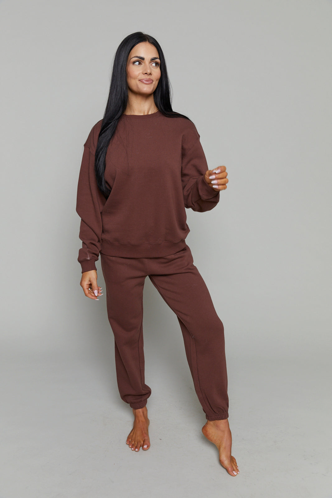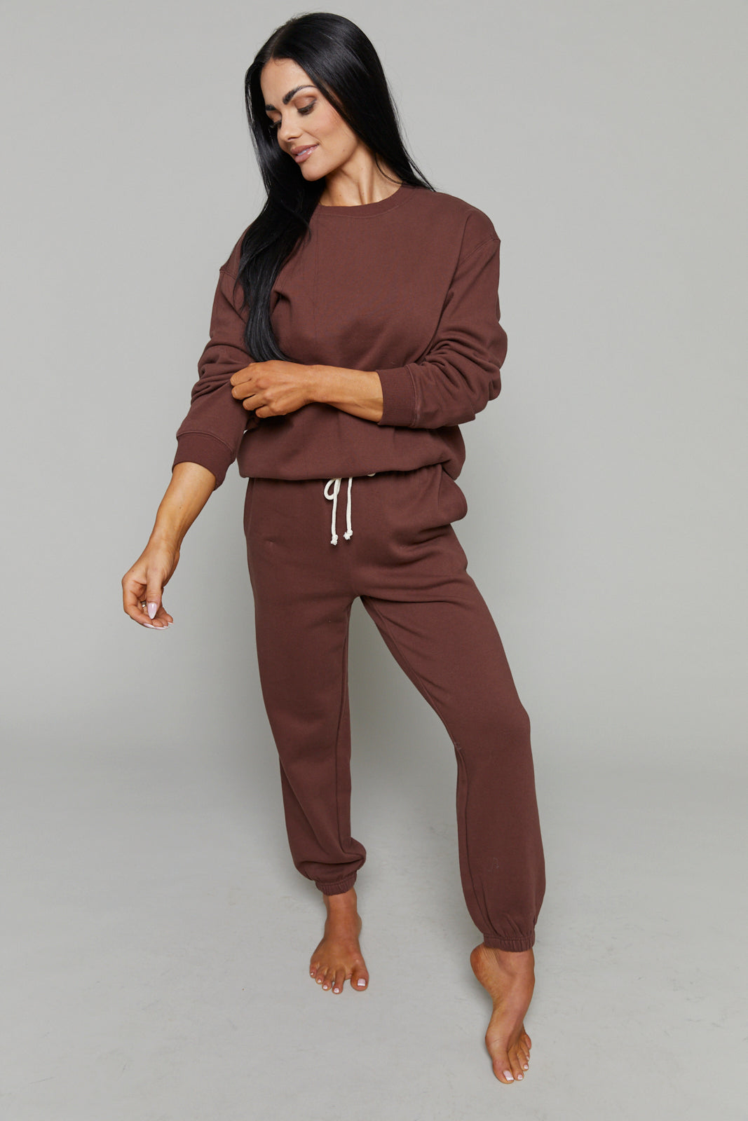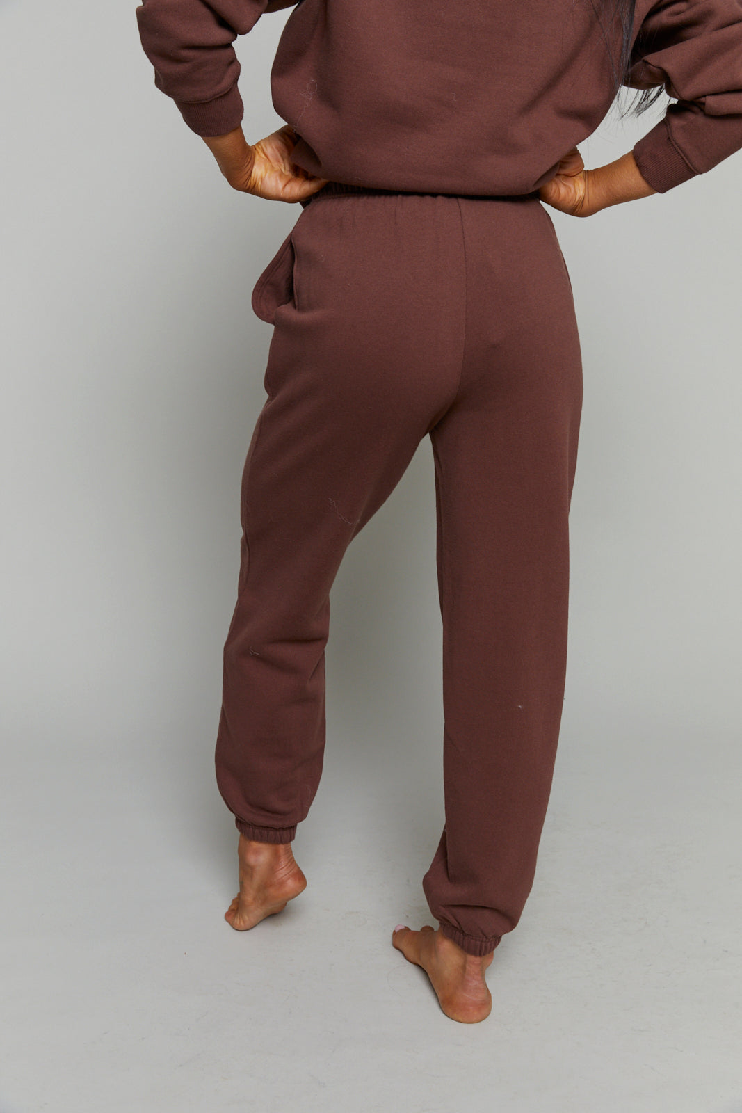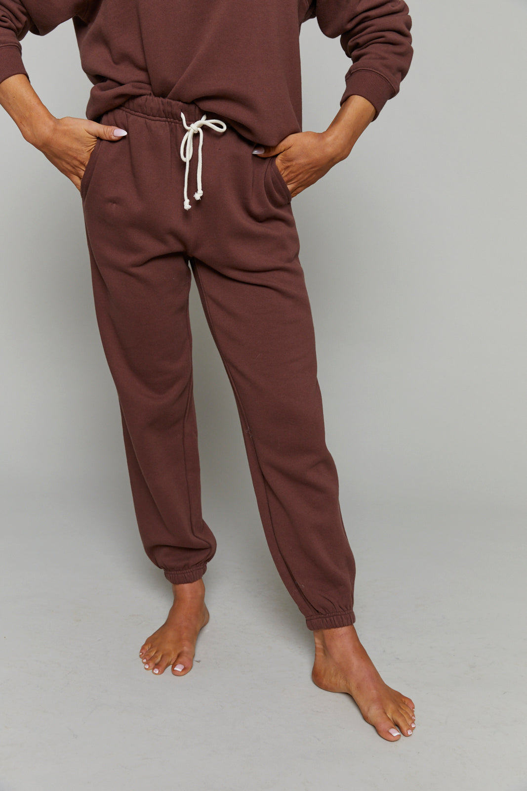 These midweight fleece joggers are high-rise with an elastic drawstring waistband and side seam pockets for that classic, comfy feel. Designed to hit at the ankle, they’re your go-to for cozy mornings, afternoon errands, or lounging in style.