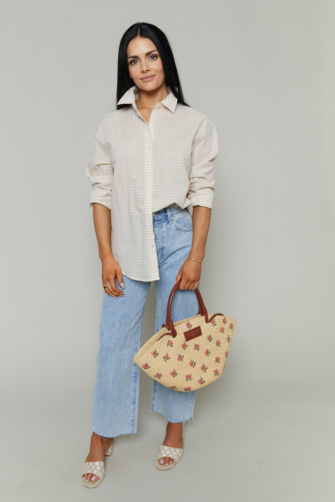 Heather Gingham Button Up Top