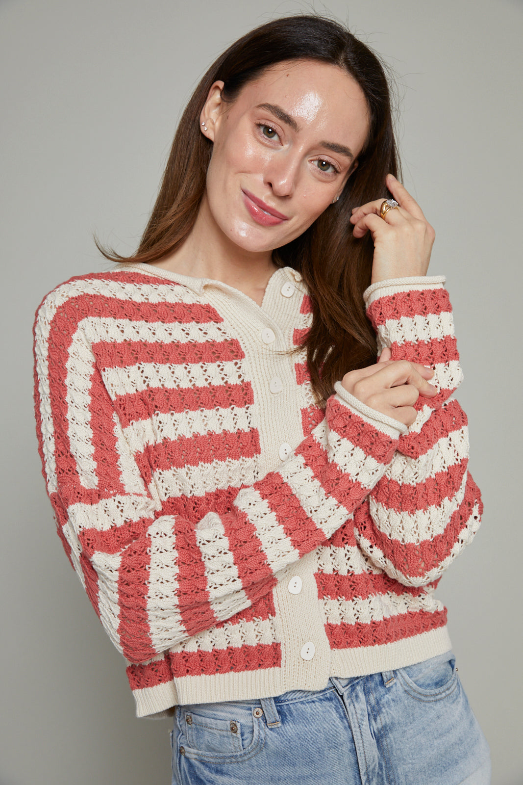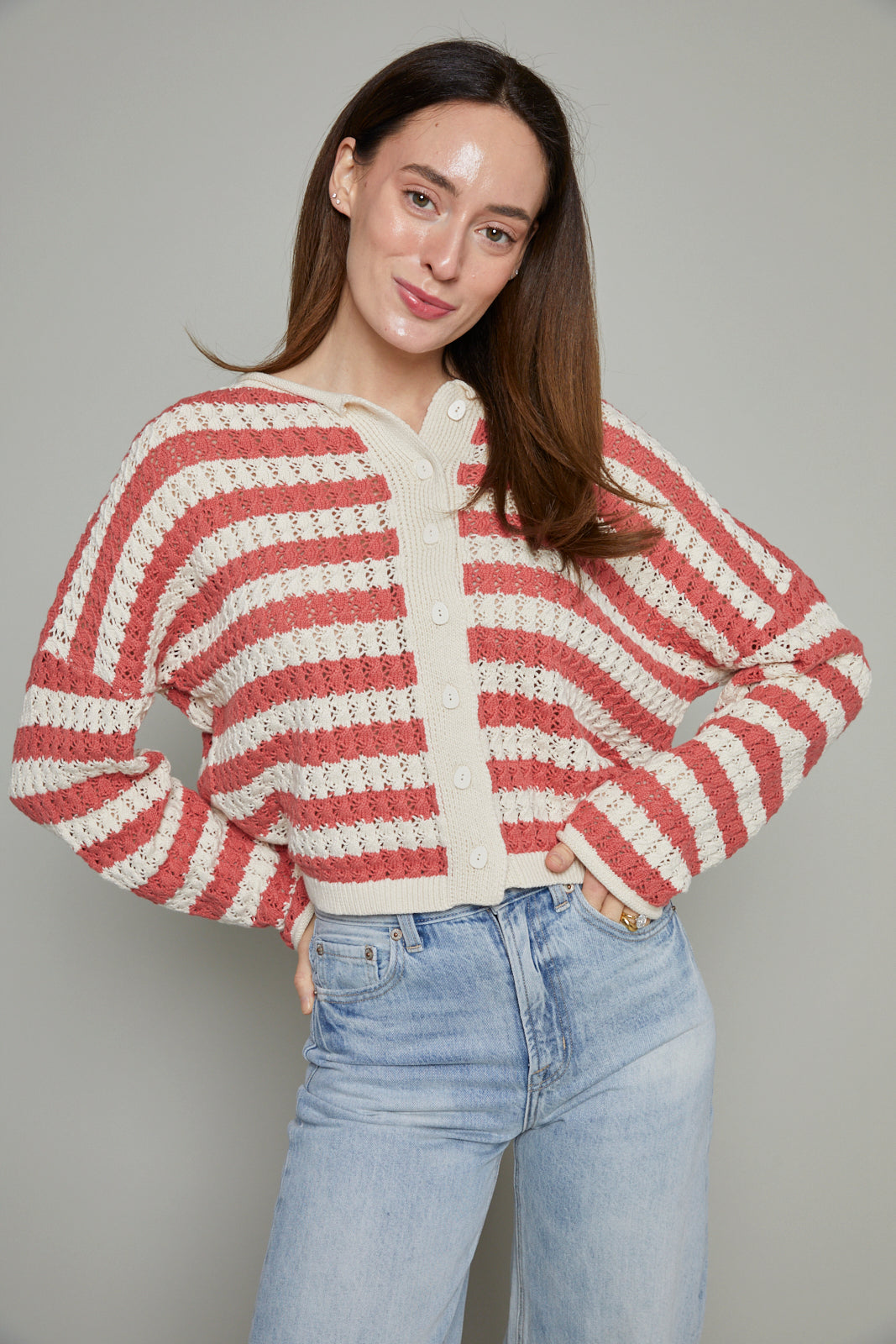 Luana Striped Rollneck Crochet Cardigan