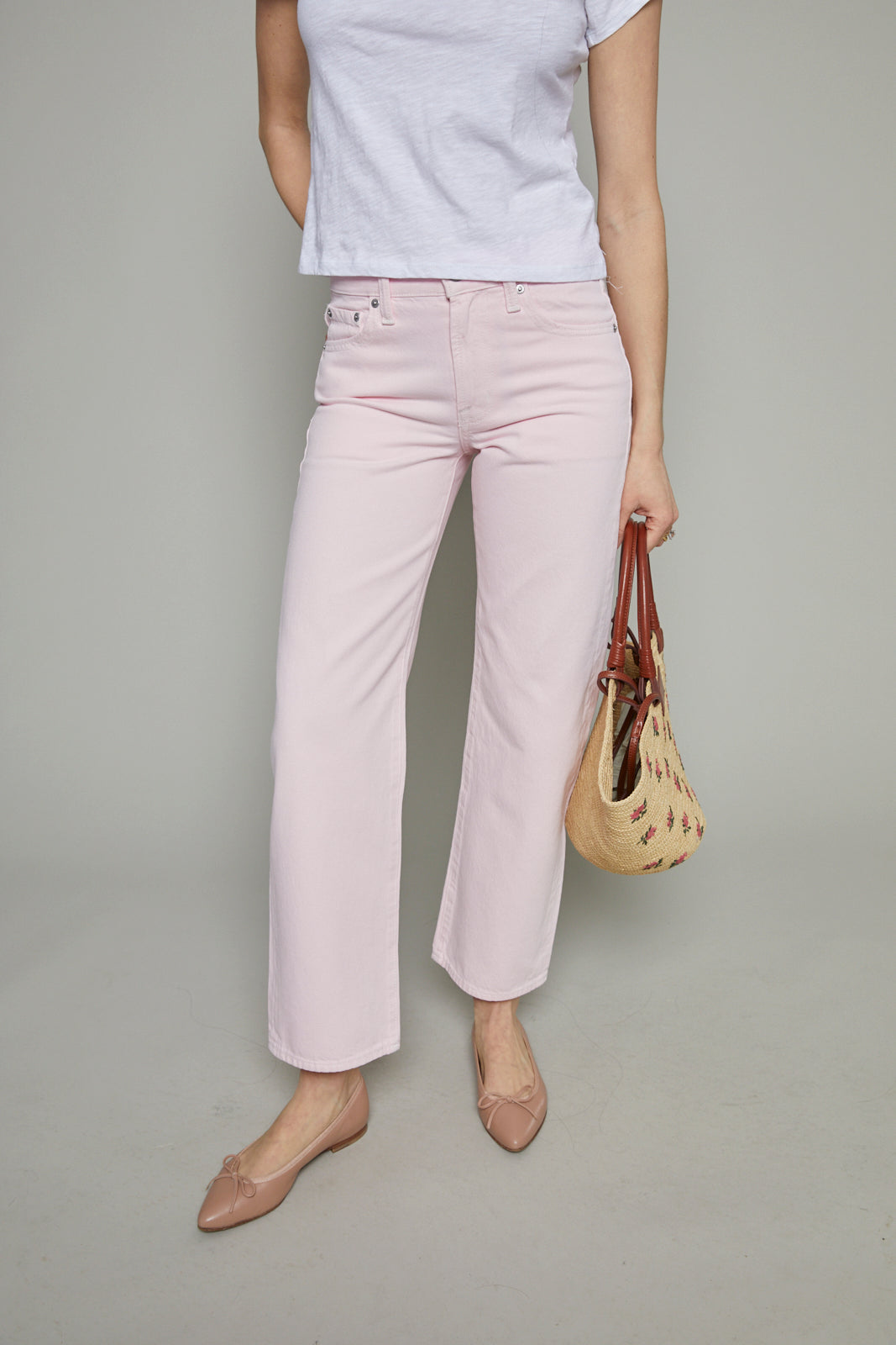 Kirby Mid Rise Bowed Straight Leg Jeans - Blush