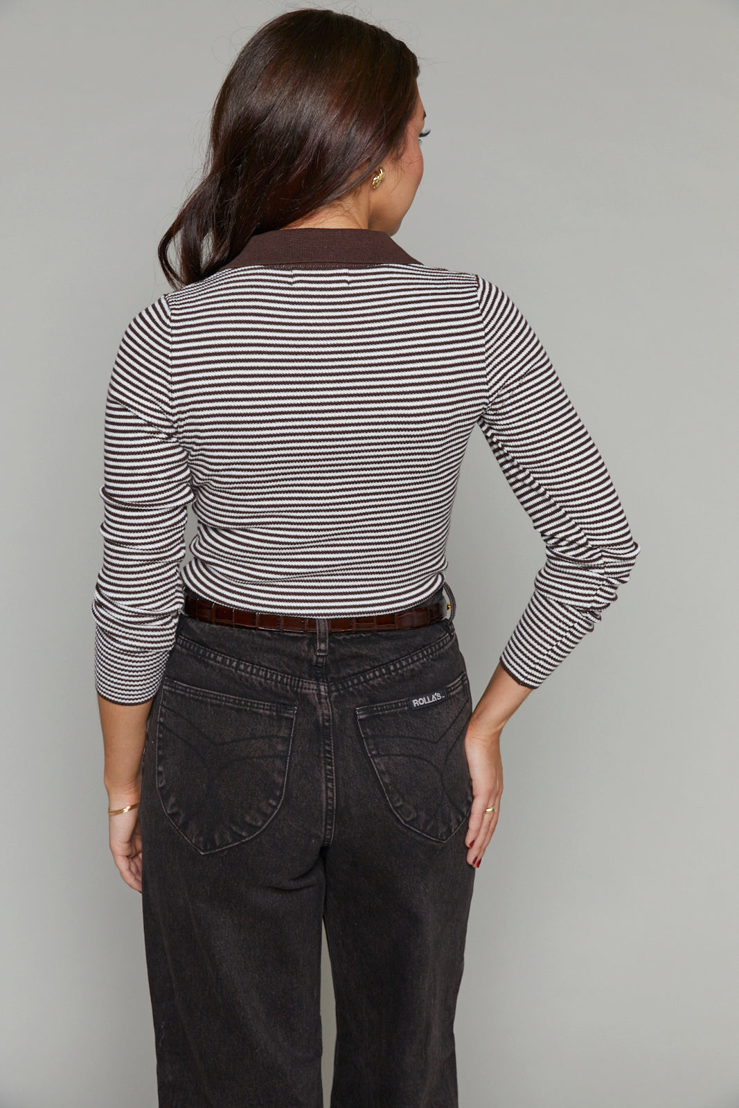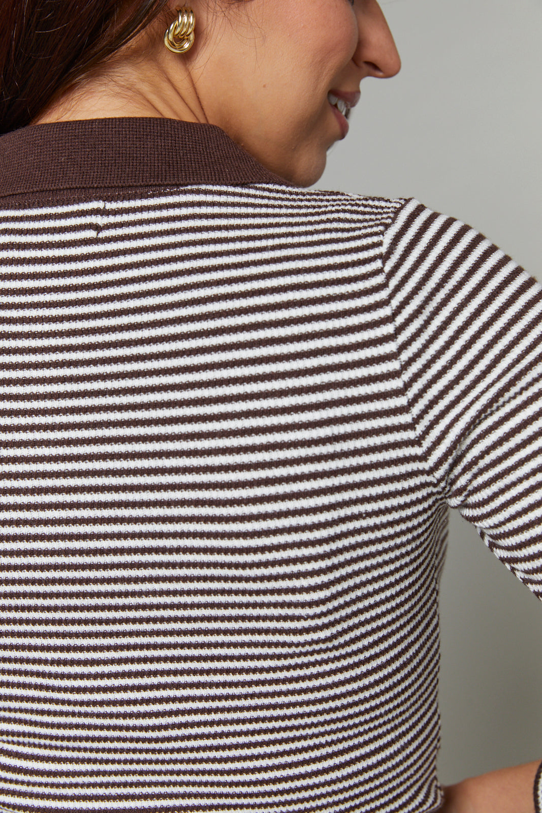 - Finished in a chocolate brown and white horizontal stripe for a bold, retro vibe