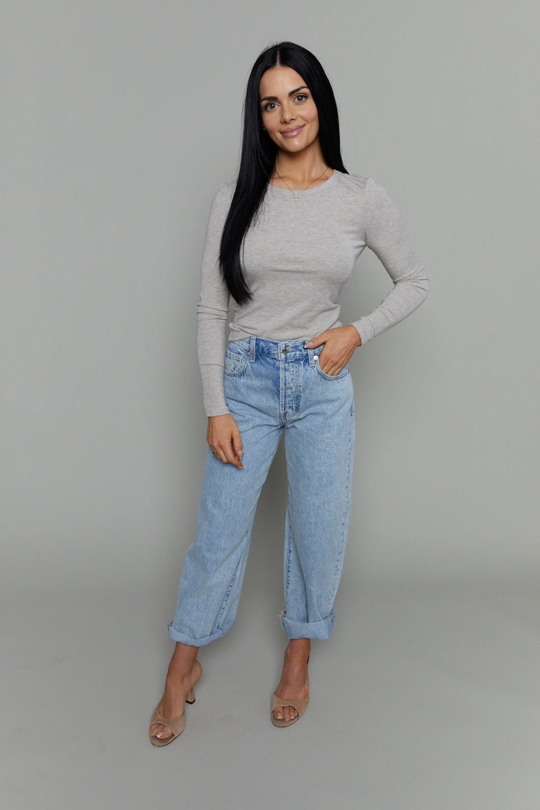 This crew neck top is made from our signature Second Skin Baby Rib with a touch of stretch for a flawless fit. It can be worn tucked or untucked and is easily layered over, making it a year-round go-to.
