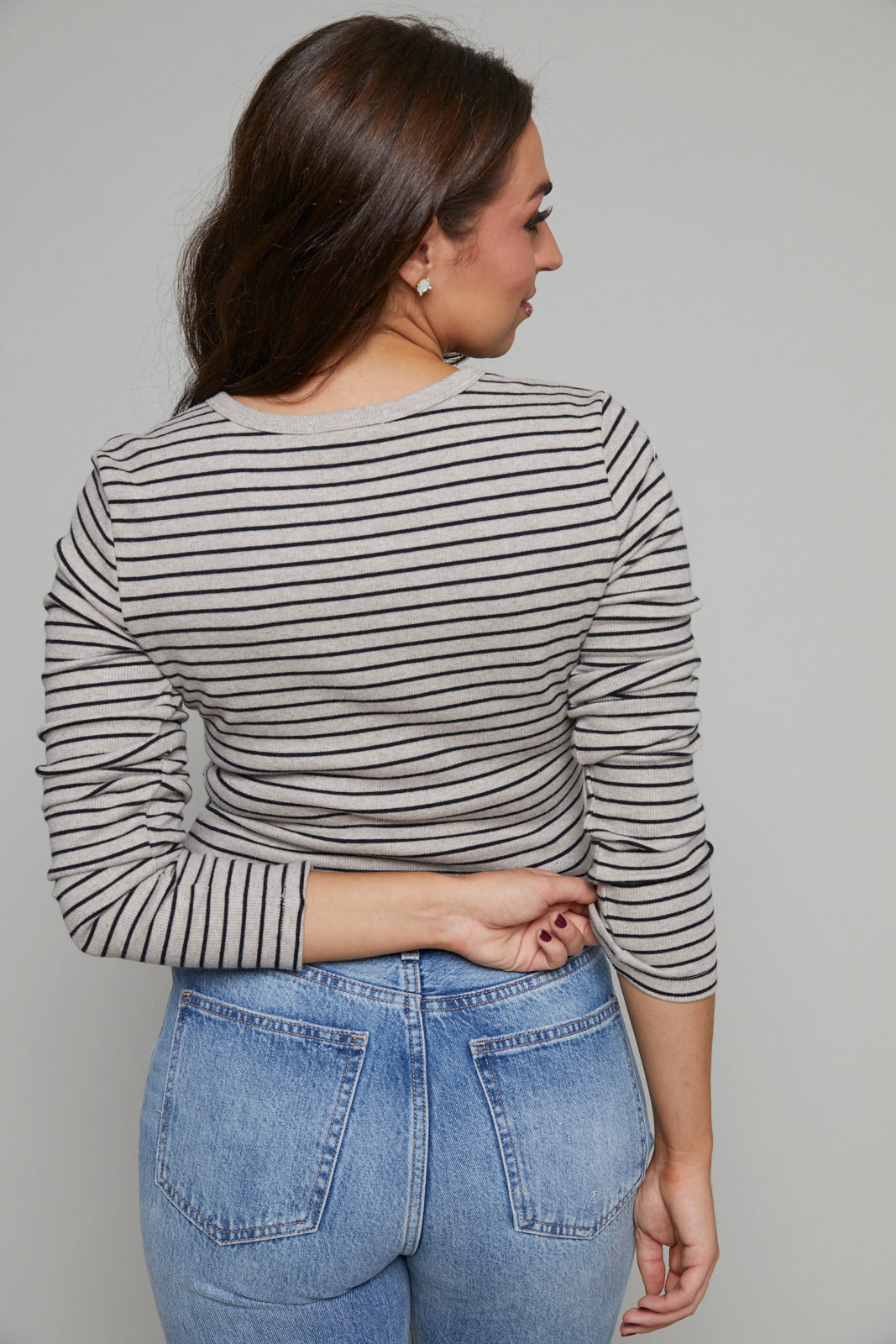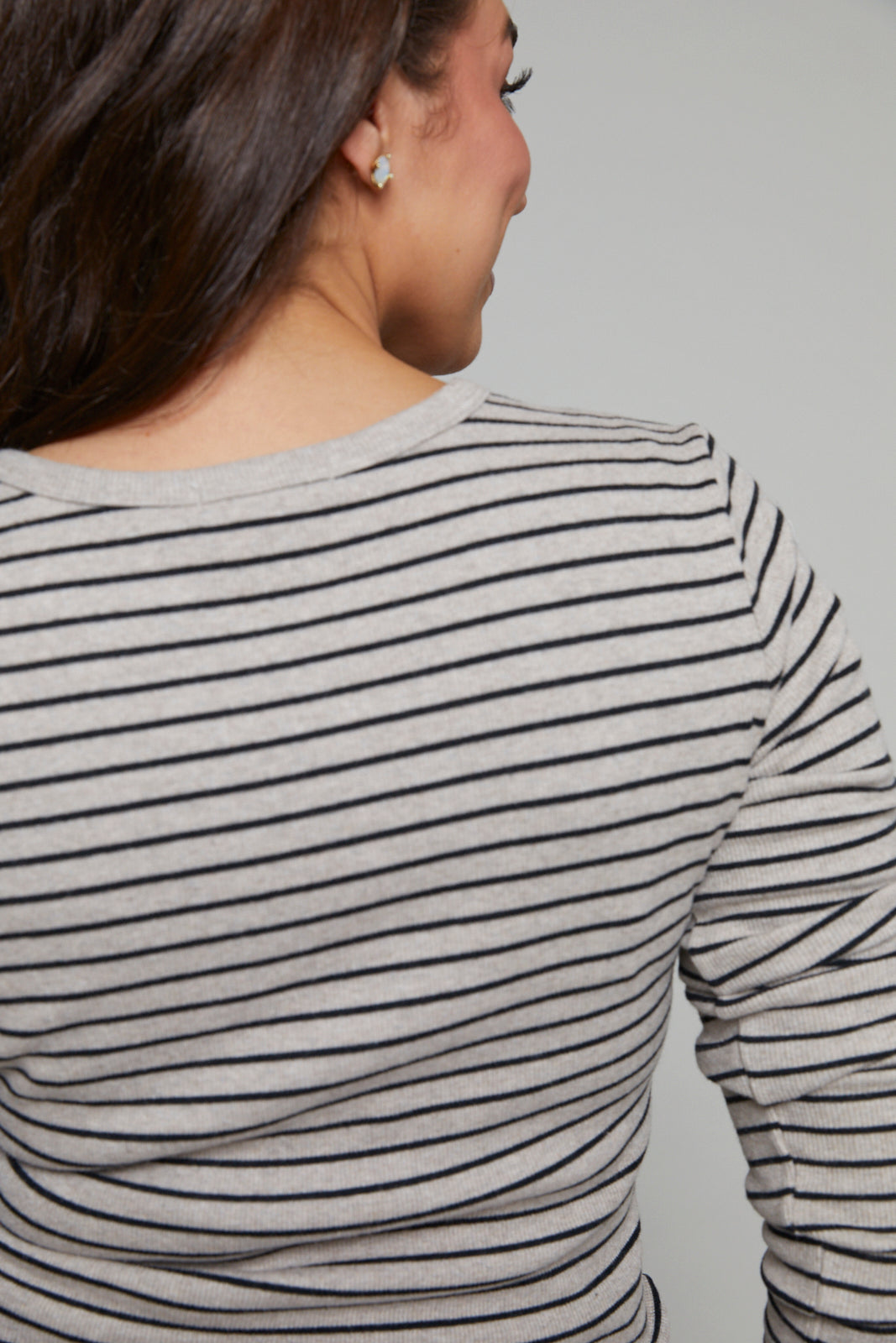 Arianna Striped Model Rib Henley - Heather Taupe