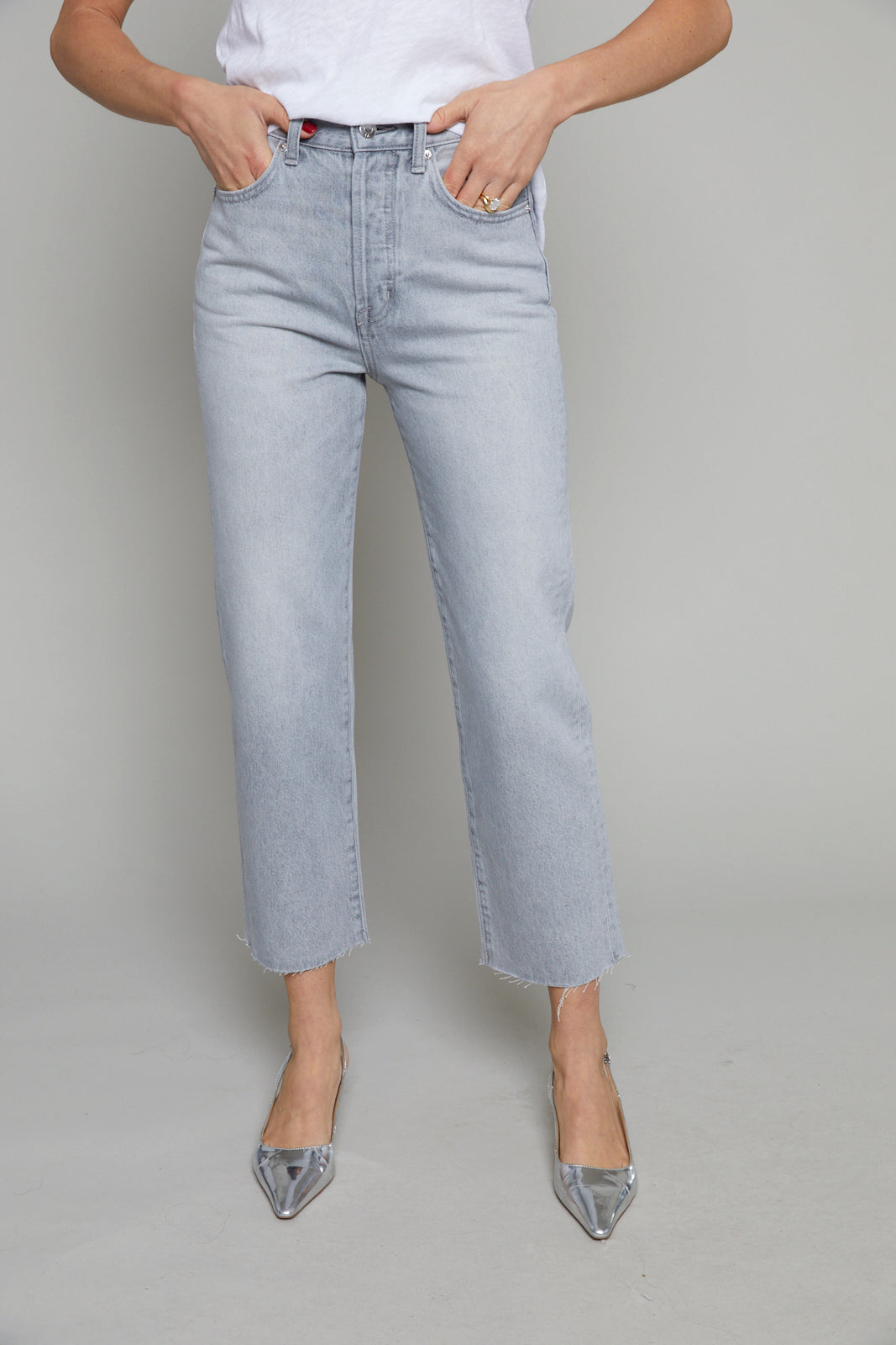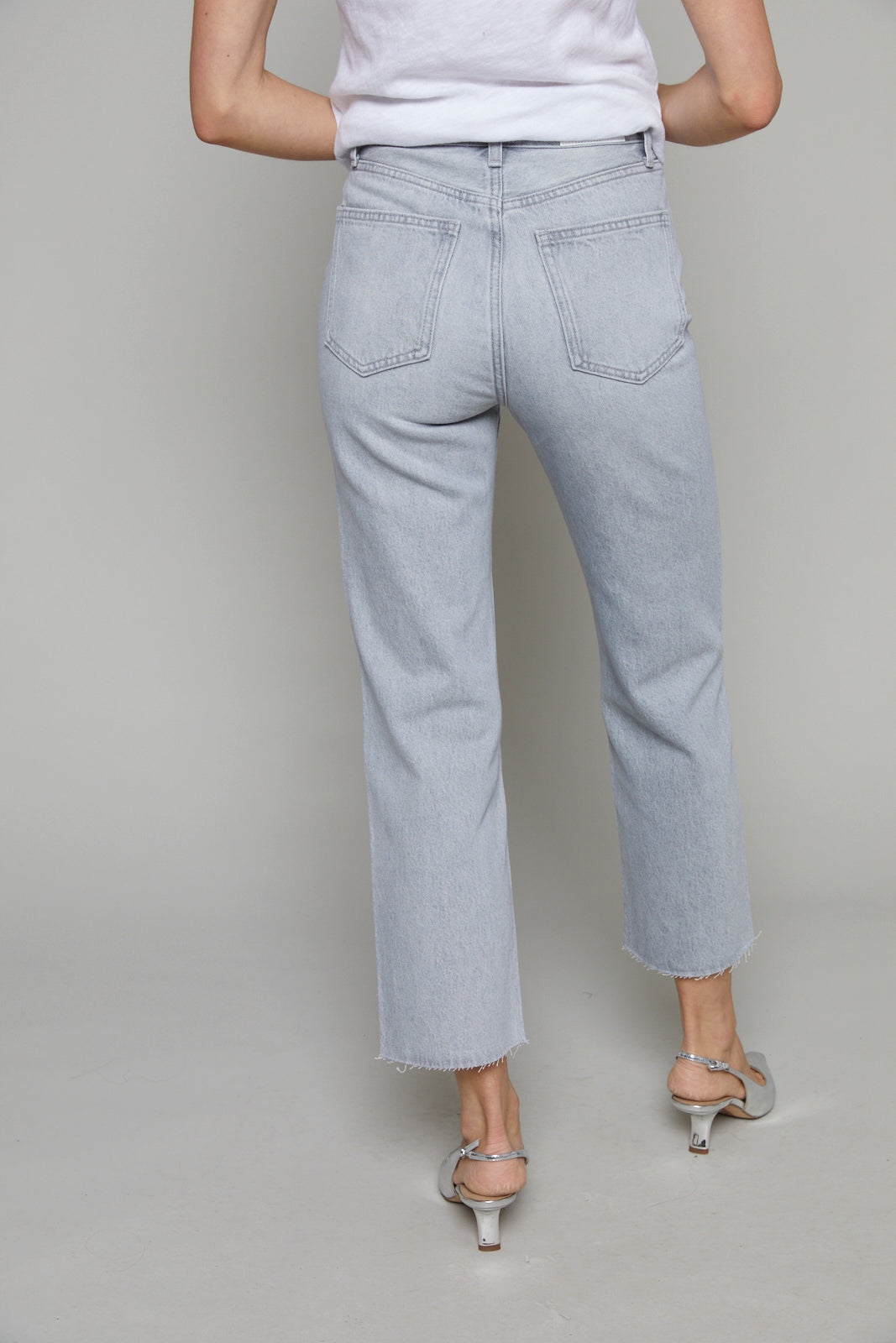 Super high rise waist with a composed straight leg silhouette and cropped ankle hem. Crafted from rigid non-stretch denim for an expert fit that holds its shape. Crafted from our premium rigid non-stretch denim in Enigma, a classic gray.