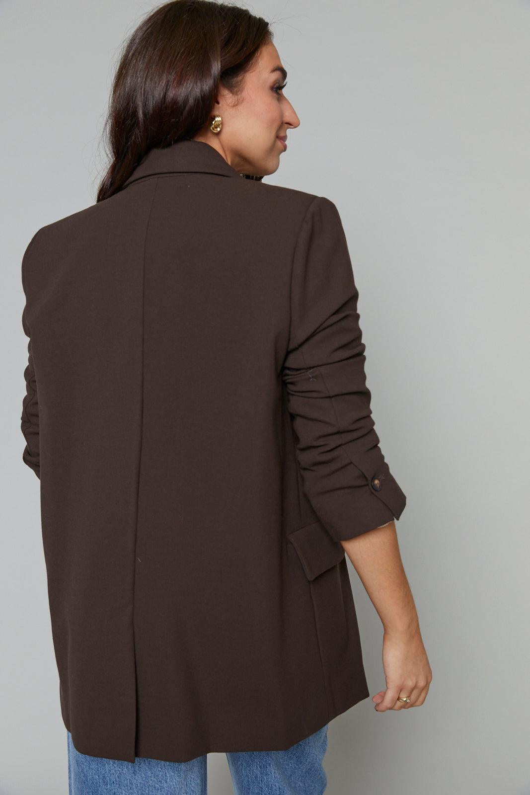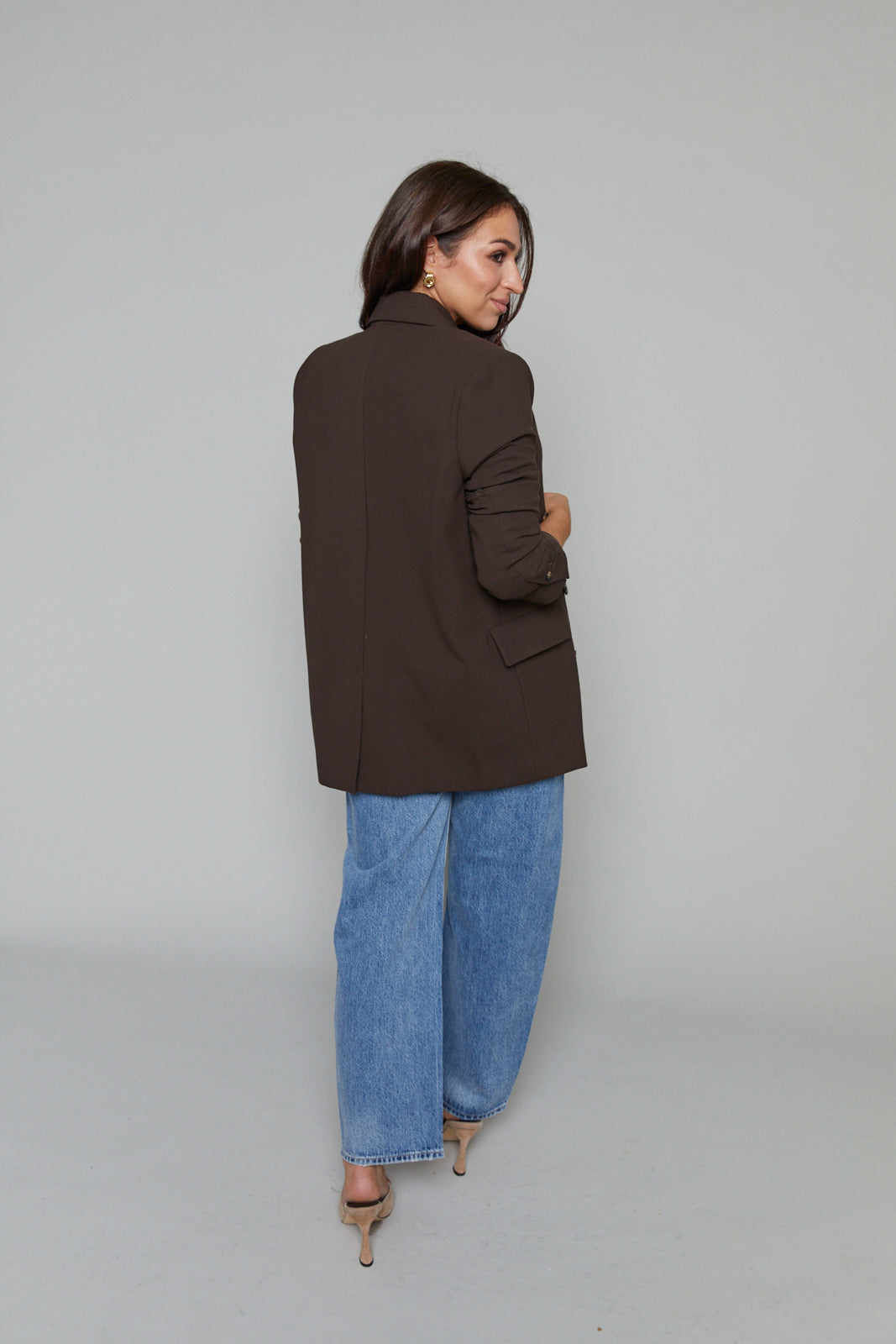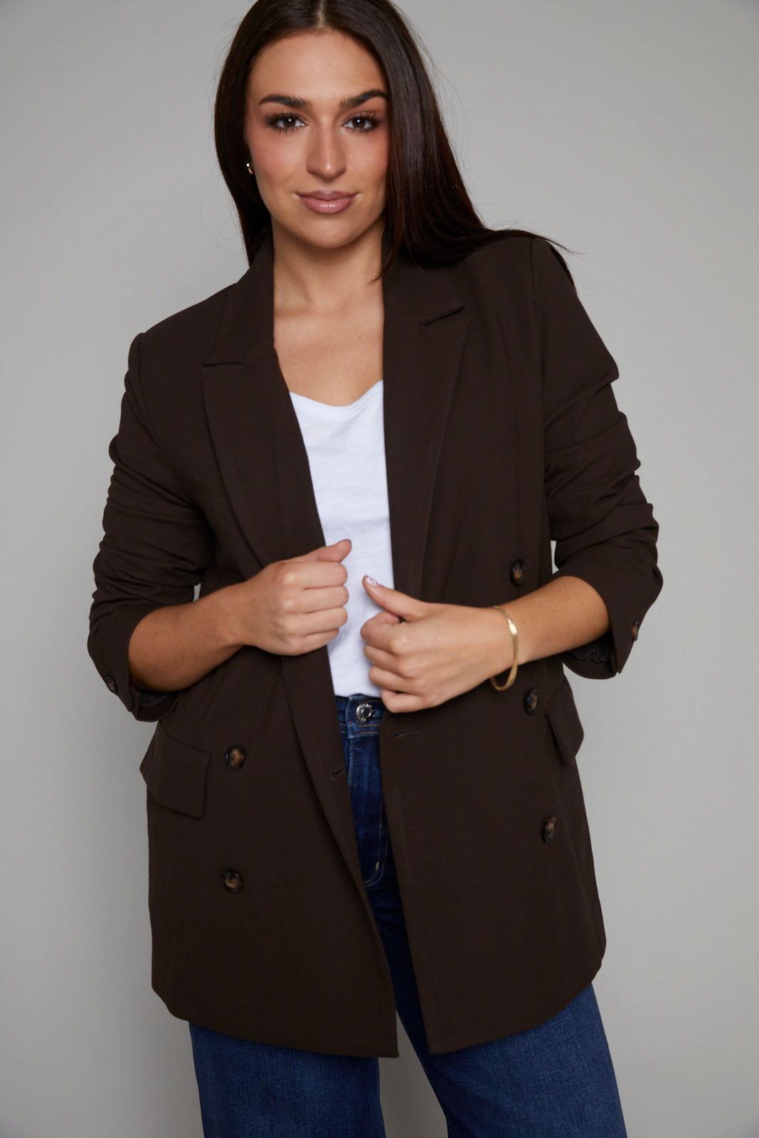 The double-breasted style is the ultimate boyfriend blazer that adds sophisticated dimension to any outfit.