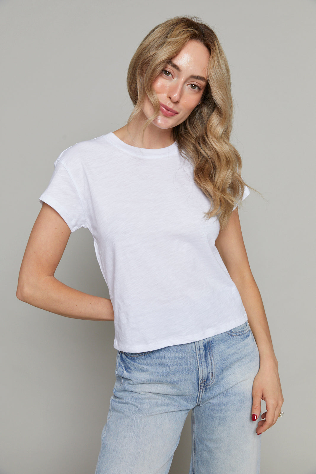 This classic crew neck is a must-have in every closet! This casual wardrobe base-layer essential is made from our vintage-feel Cotton Slub Jersey fabric and features a relaxed, body skimming fit.