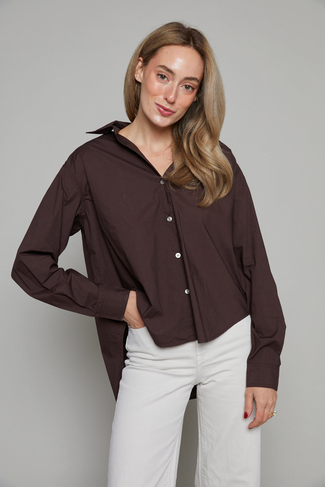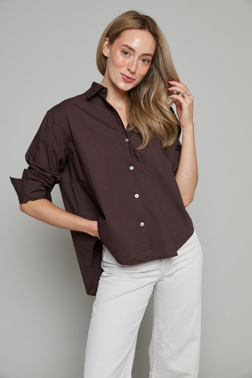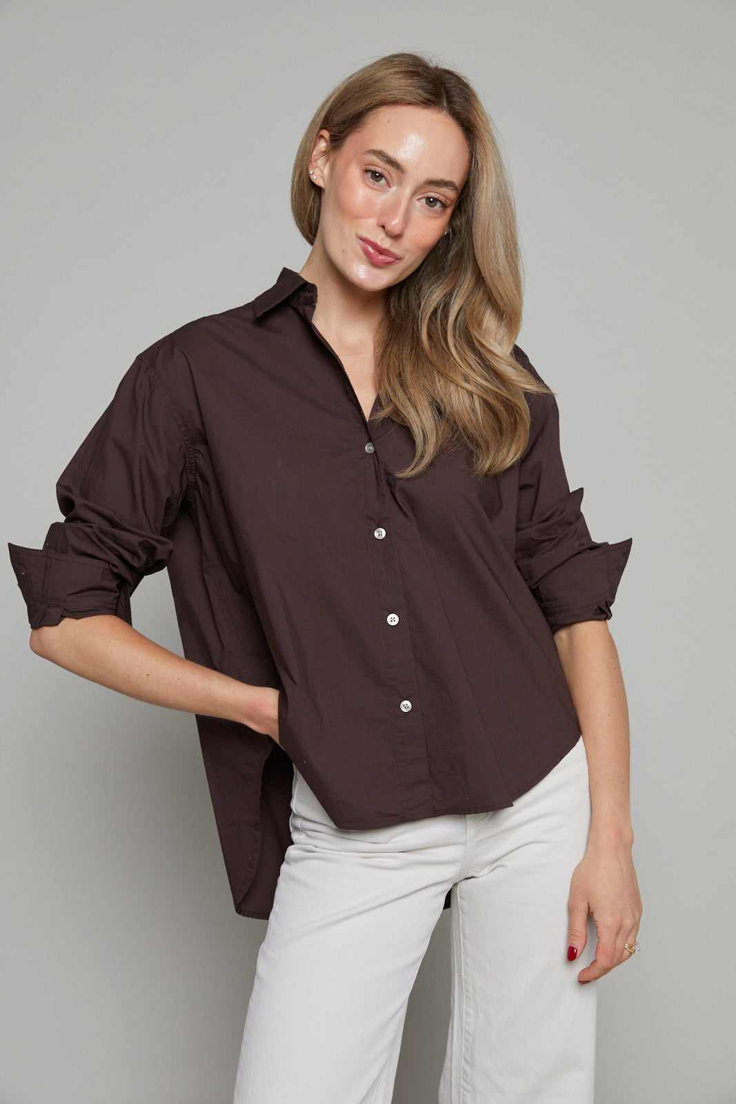The Gabrielle Oversized Button Up is relaxed, roomy fit invites effortless comfort, while the classic button-up design keeps it timeless and versatile. Whether layered over your favorite tee or worn solo, this piece adapts seamlessly to your day, giving you the freedom to express a laid-back yet polished vibe.