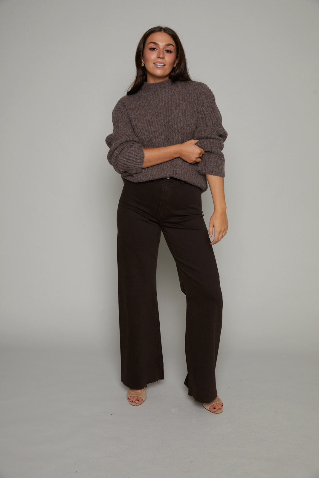 Jessie Relaxed High Neck Ribbed Sweater - Bark