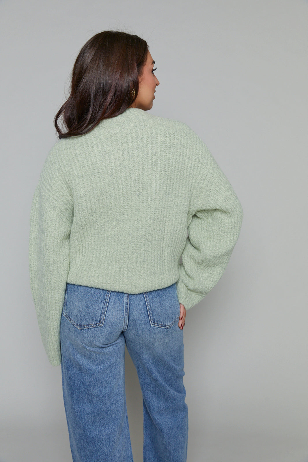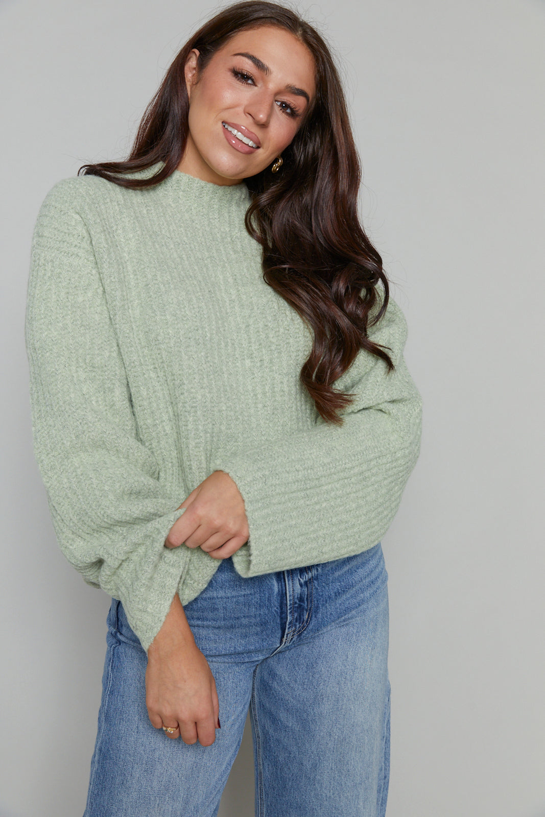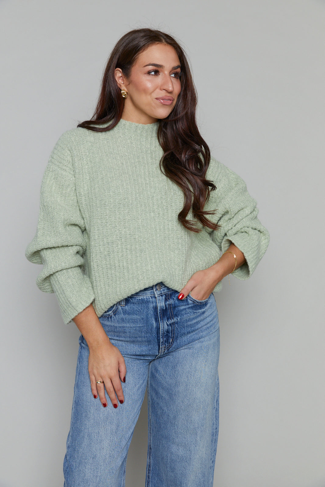 Jessie Relaxed High Neck Ribbed Sweater - Grass