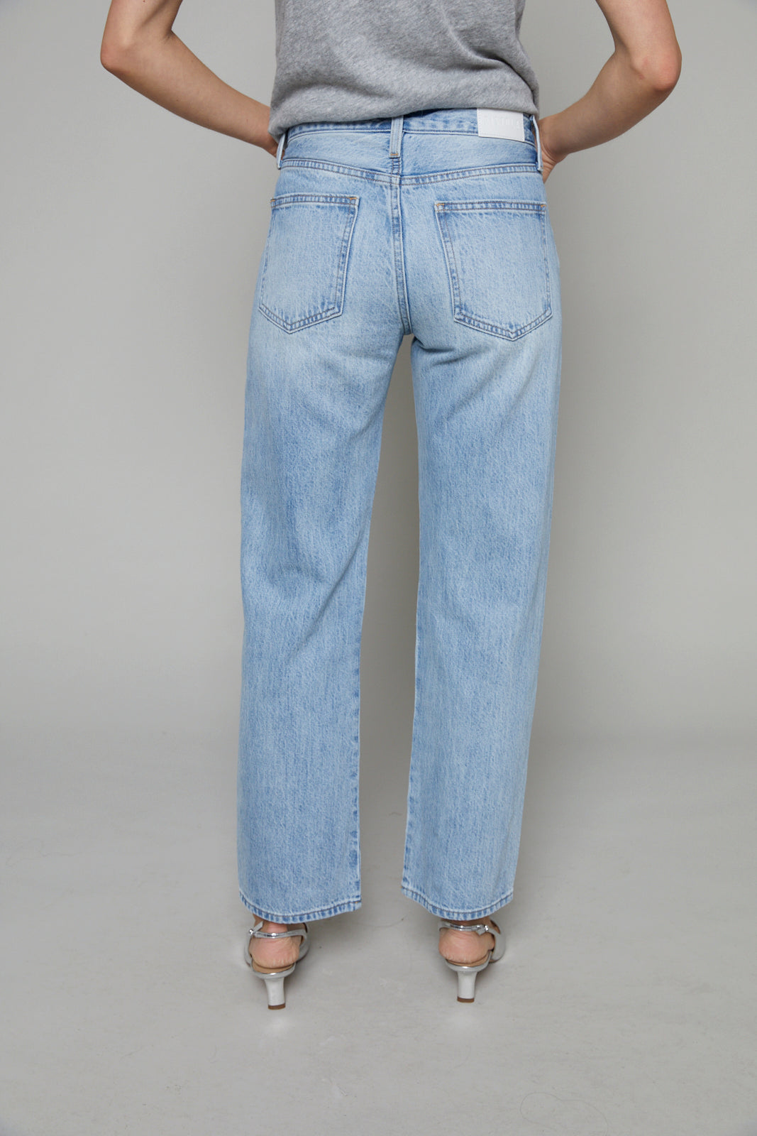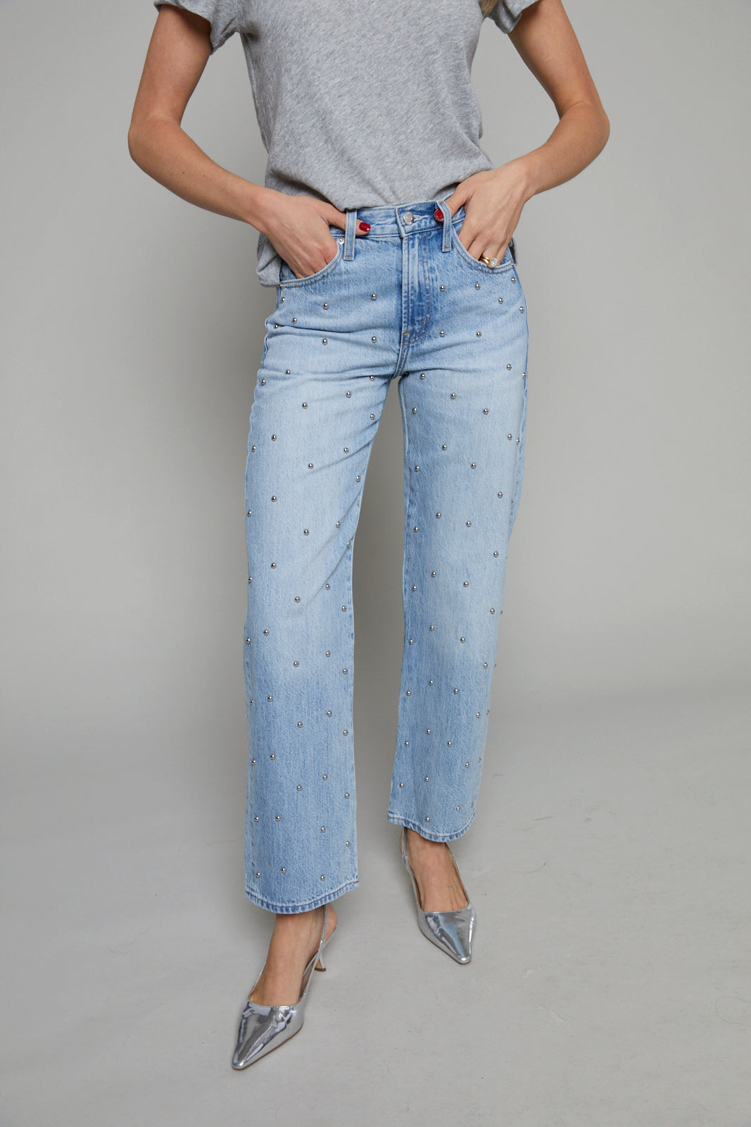 The best-selling jean that understands proportions. Lexi sits at the perfect mid-rise with our signature bowed straight leg, and a subtle curve at the knee that creates dimension without effort. The silhouette tapers to a cropped ankle with a clean hem. Crafted from our rigid denim in Aries, a light blue wash adorned with subtle stud details that feel refined and intentional, never overdone. Your must-have statement jean for making an impact with sophisticated appeal.