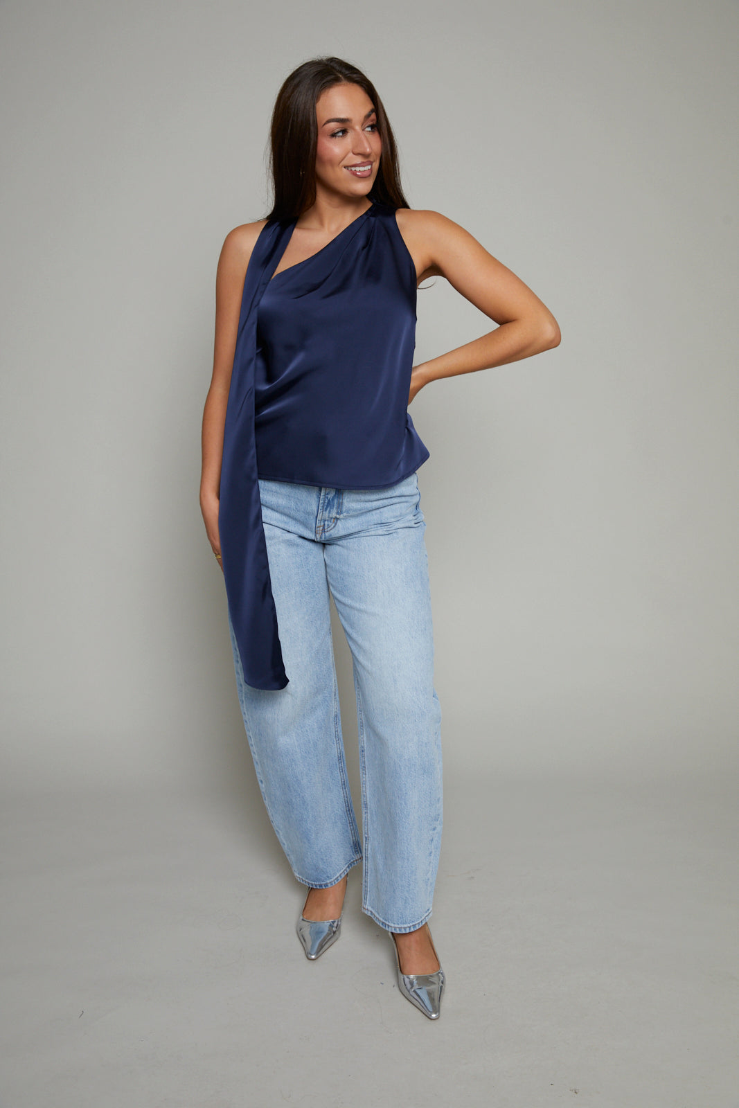 Elevate your wardrobe with the Layla Tie Neck Satin Top, where elegance meets effortless charm. Crafted from smooth satin, this top captures the soft glow of evening light, while the delicate tie neck detail adds a touch of vintage romance.