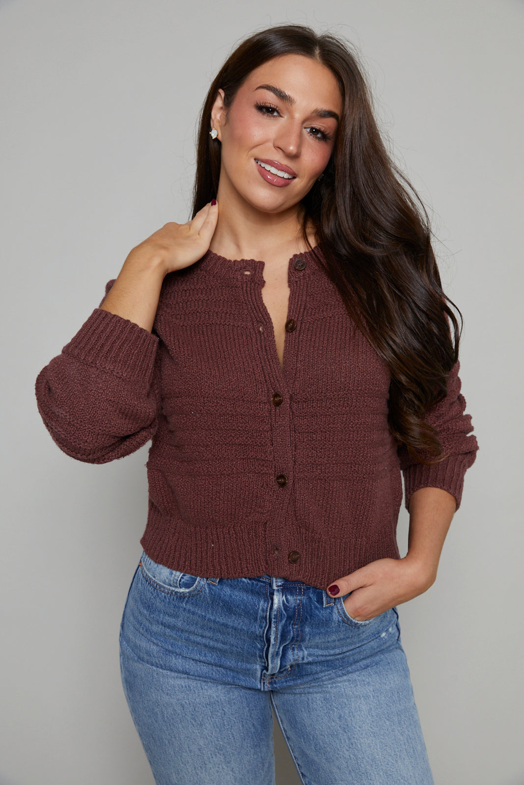 Dimensional tonal stripes and subtle balloon sleeves give this lightweight cardigan just the right amount of texture. It's that versatile layer you’ll throw on from your morning coffee run to weekend errands.