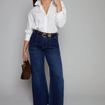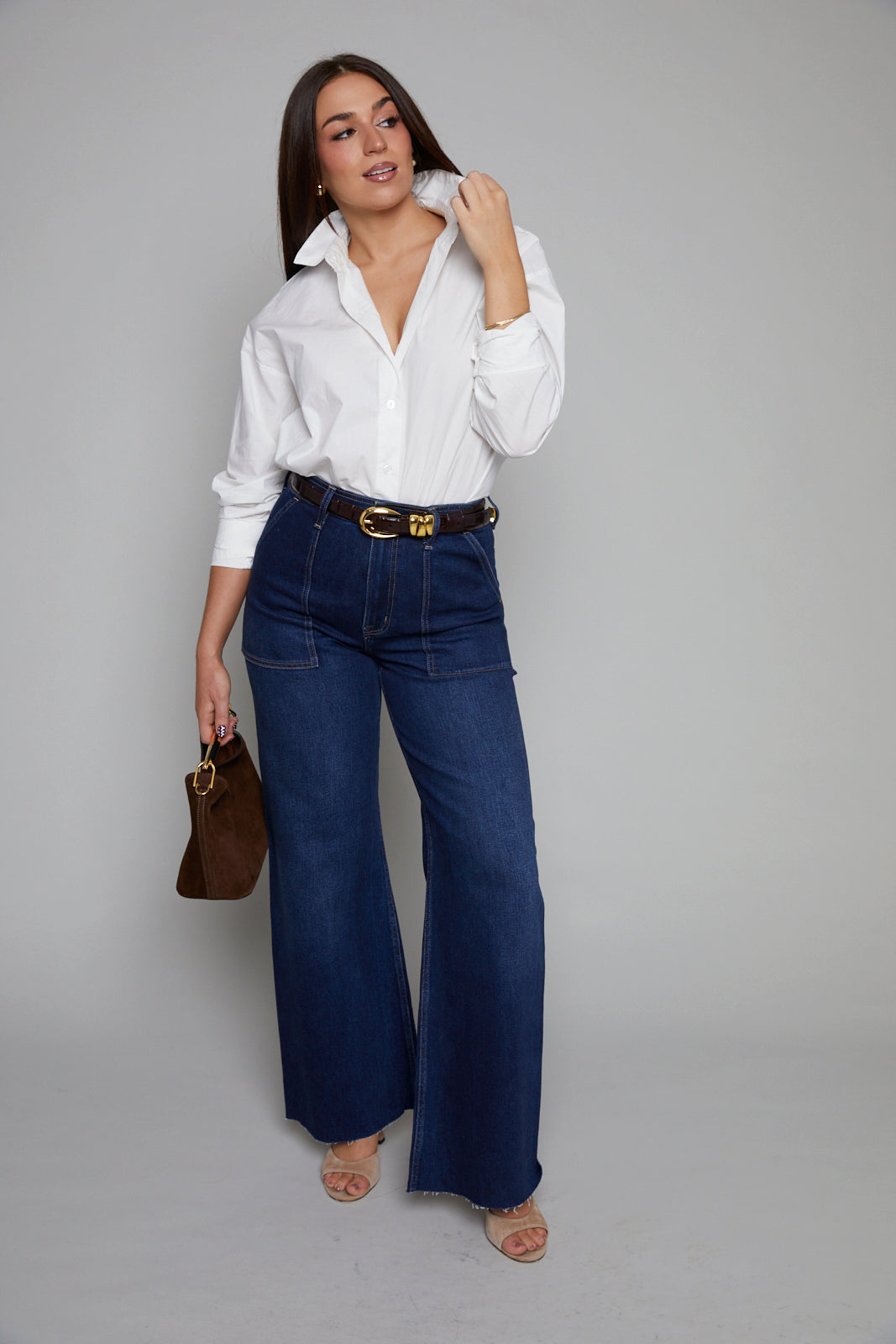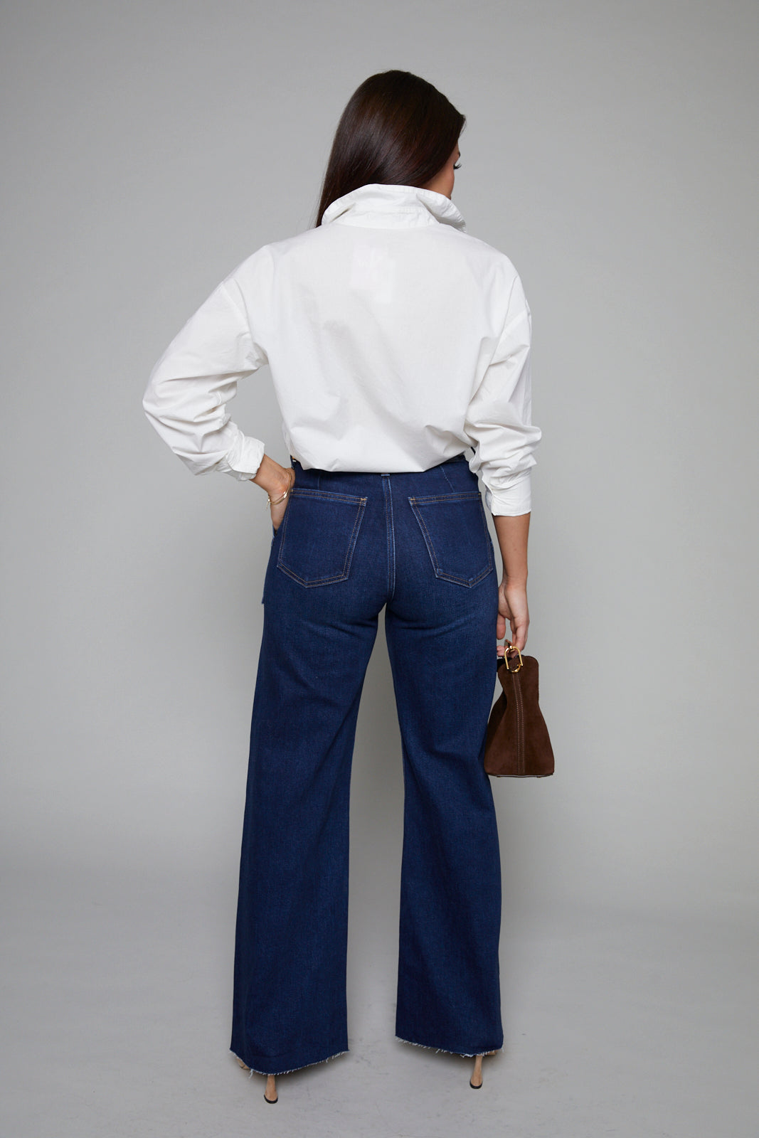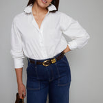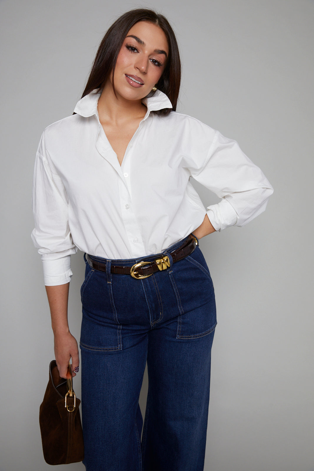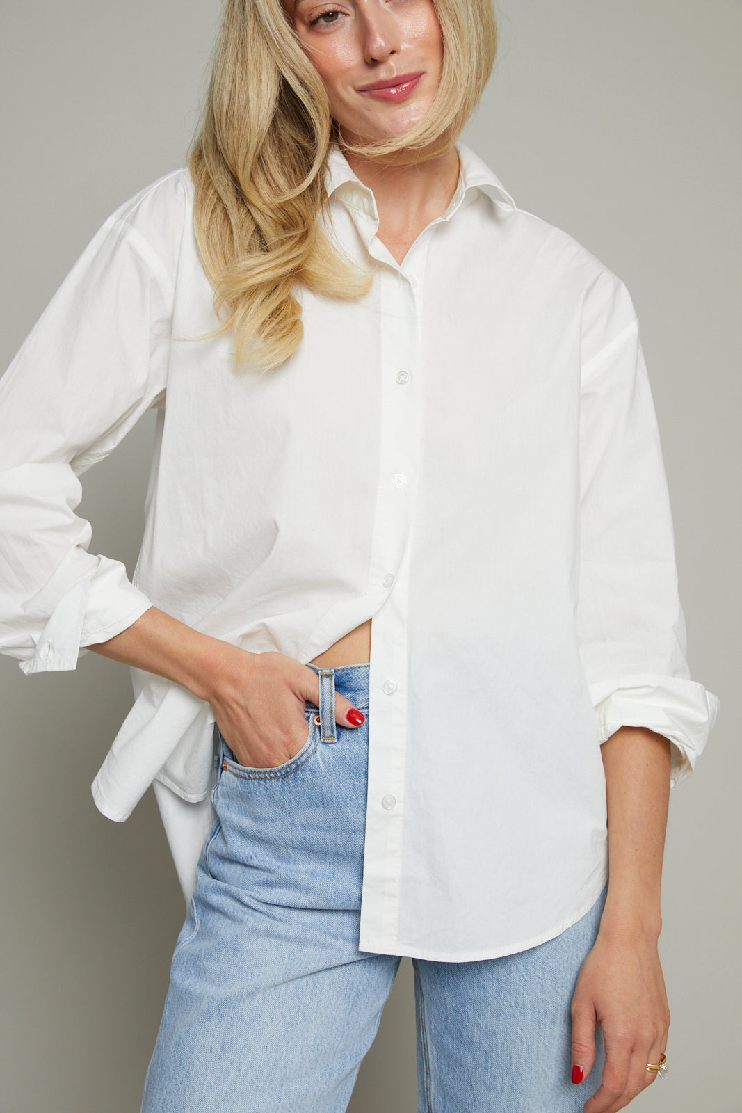 This poplin button-up brings structure to your wardrobe with a relaxed fit and lightweight, breathable cotton feel. The collared neckline and long sleeves make it ideal for dressing up or styling open over tanks.