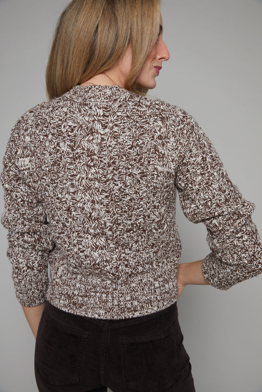 The fisherman sweater, refined for modern life. Solace delivers classic cable knit charm with a shrunken silhouette that feels contemporary, never bulky. Our bestselling fisherman sweater brings traditional texture with modern proportions that flatter without overwhelming. Crafted from a luxurious blend that feels substantial yet comfortable for all-day wear. Chocolate Marl brings rich sophistication with its marled brown tone that adds depth and dimension.