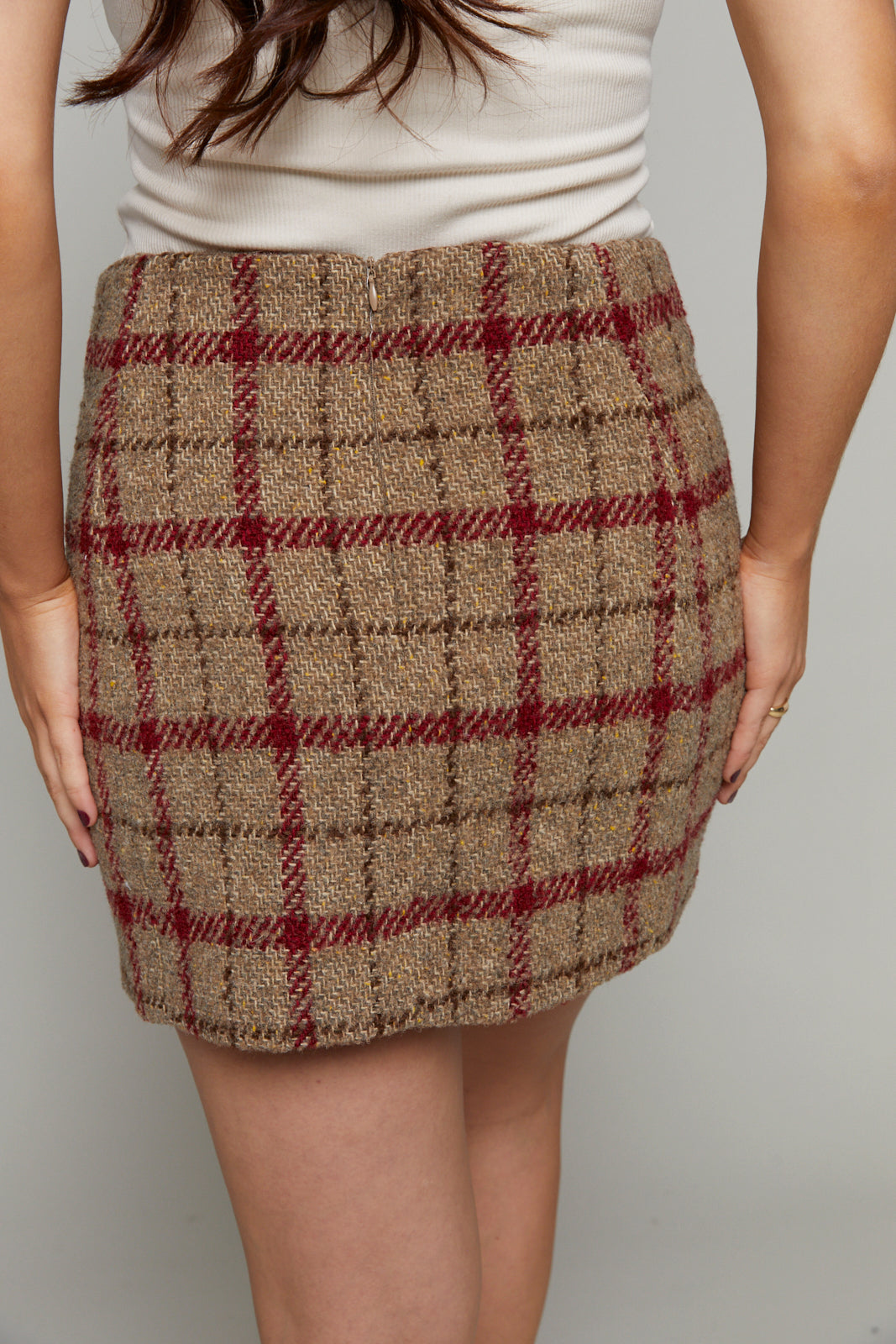 Step into effortless charm with the Tara Plaid Mini Skirt. Its classic plaid pattern brings timeless style to your wardrobe.Thoughtfully designed with convenient front pockets, it blends practicality with fashion, making it perfect for everything from casual days out to cozy coffee dates