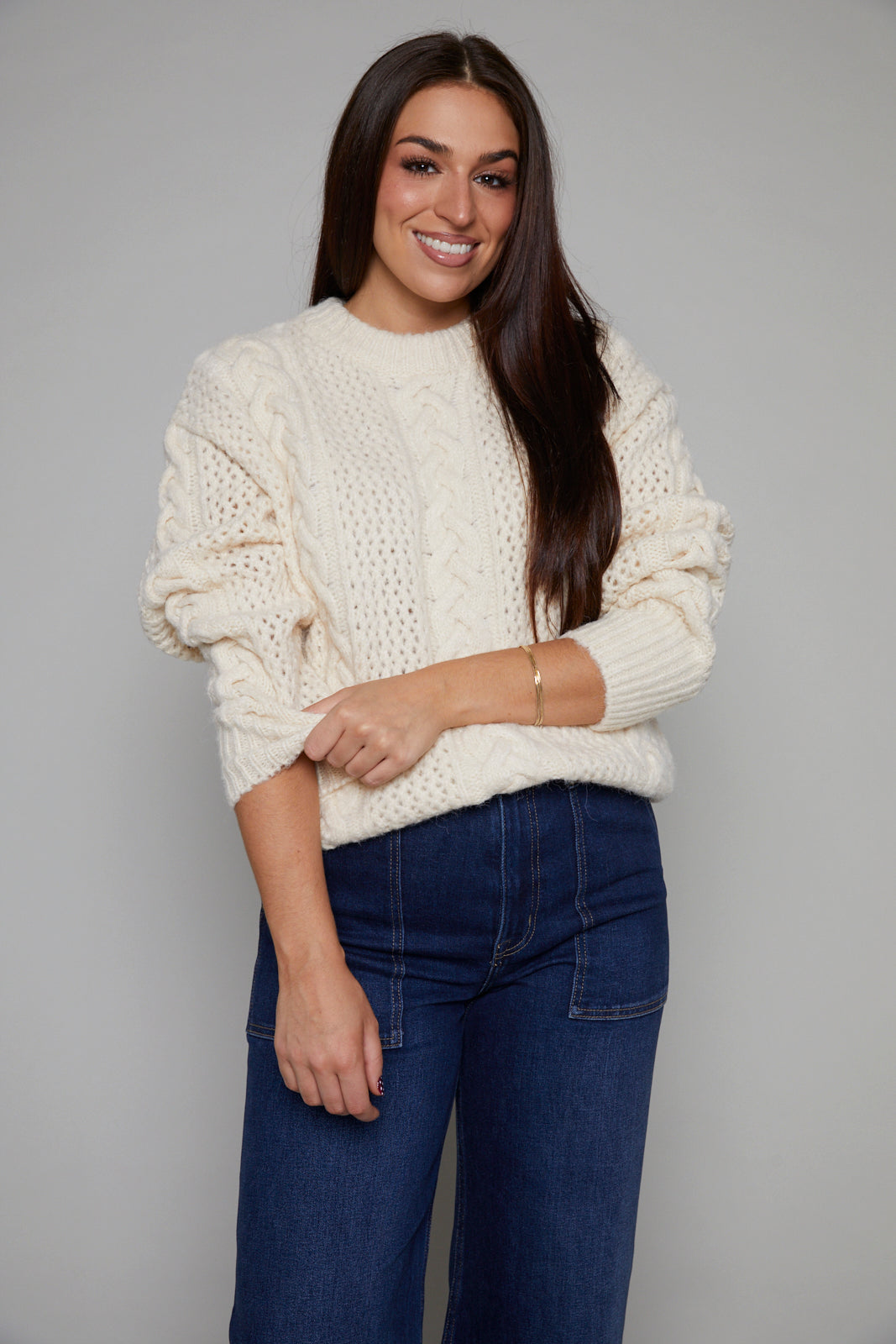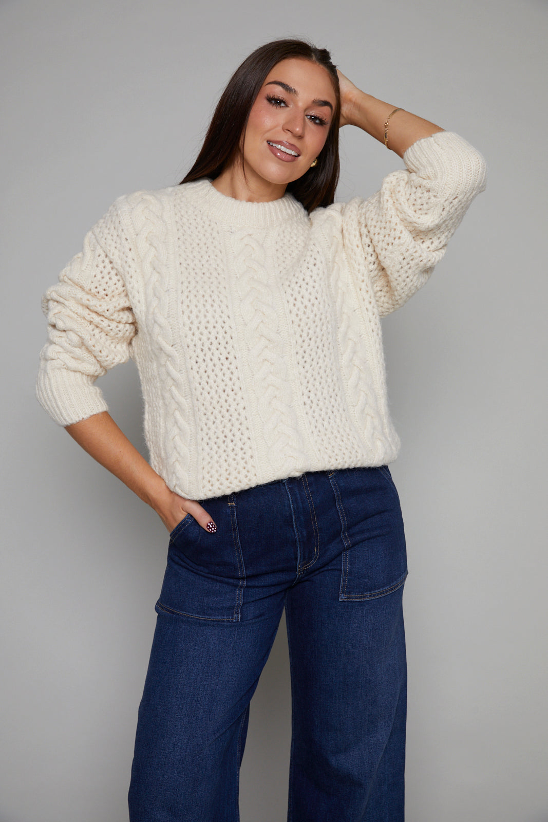Tatiana Chunky Cable Knit Sweater - Cream