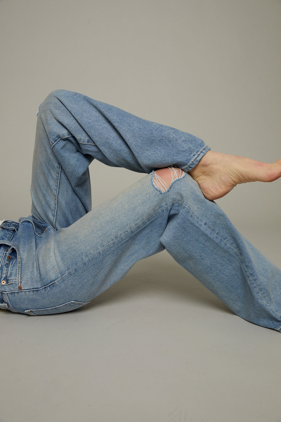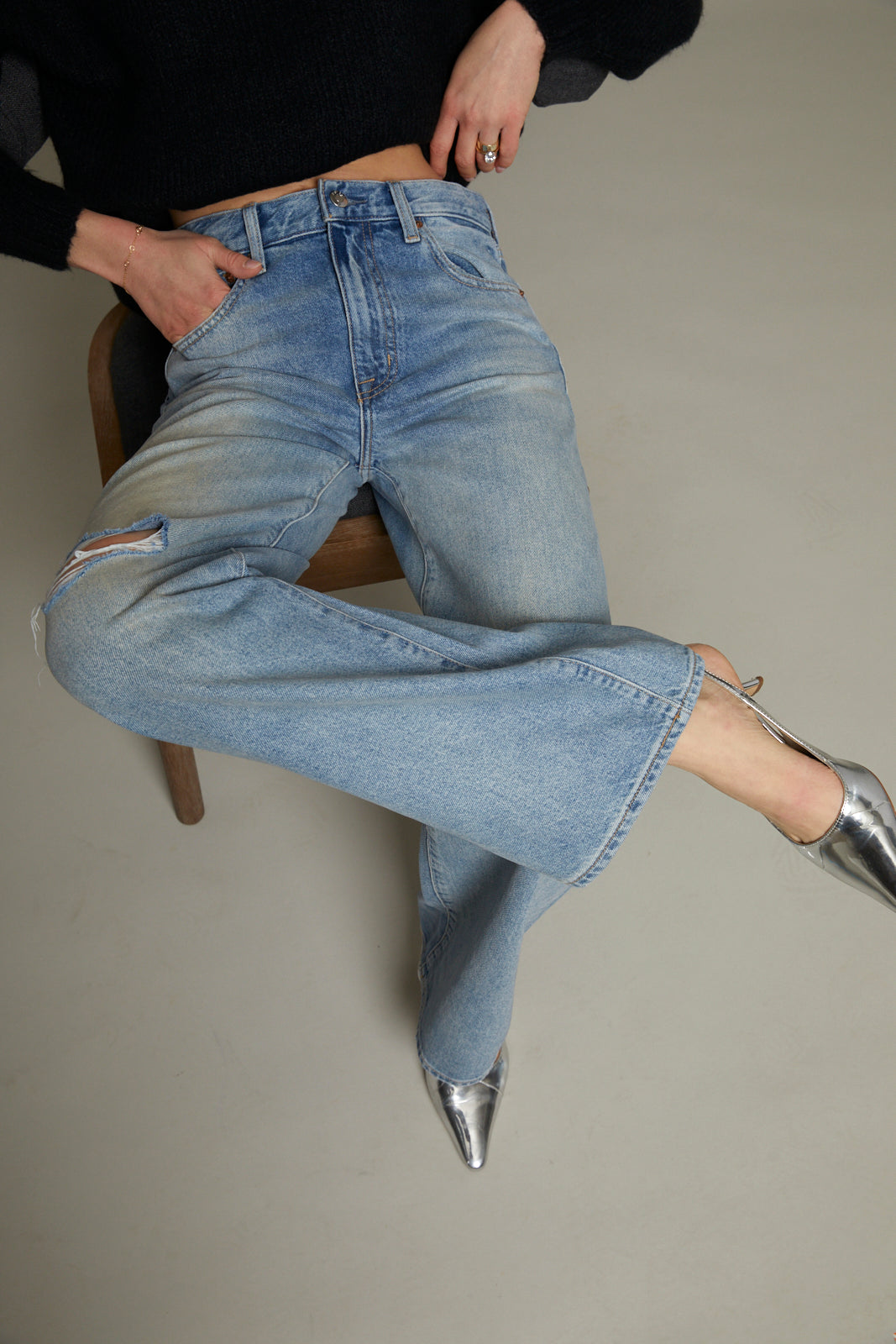 Relaxed fit denim that hits at high waist and falls into a slouchy, medium width leg silhouette. Crafted from rigid non-stretch denim for an expert fit that hold its shape.