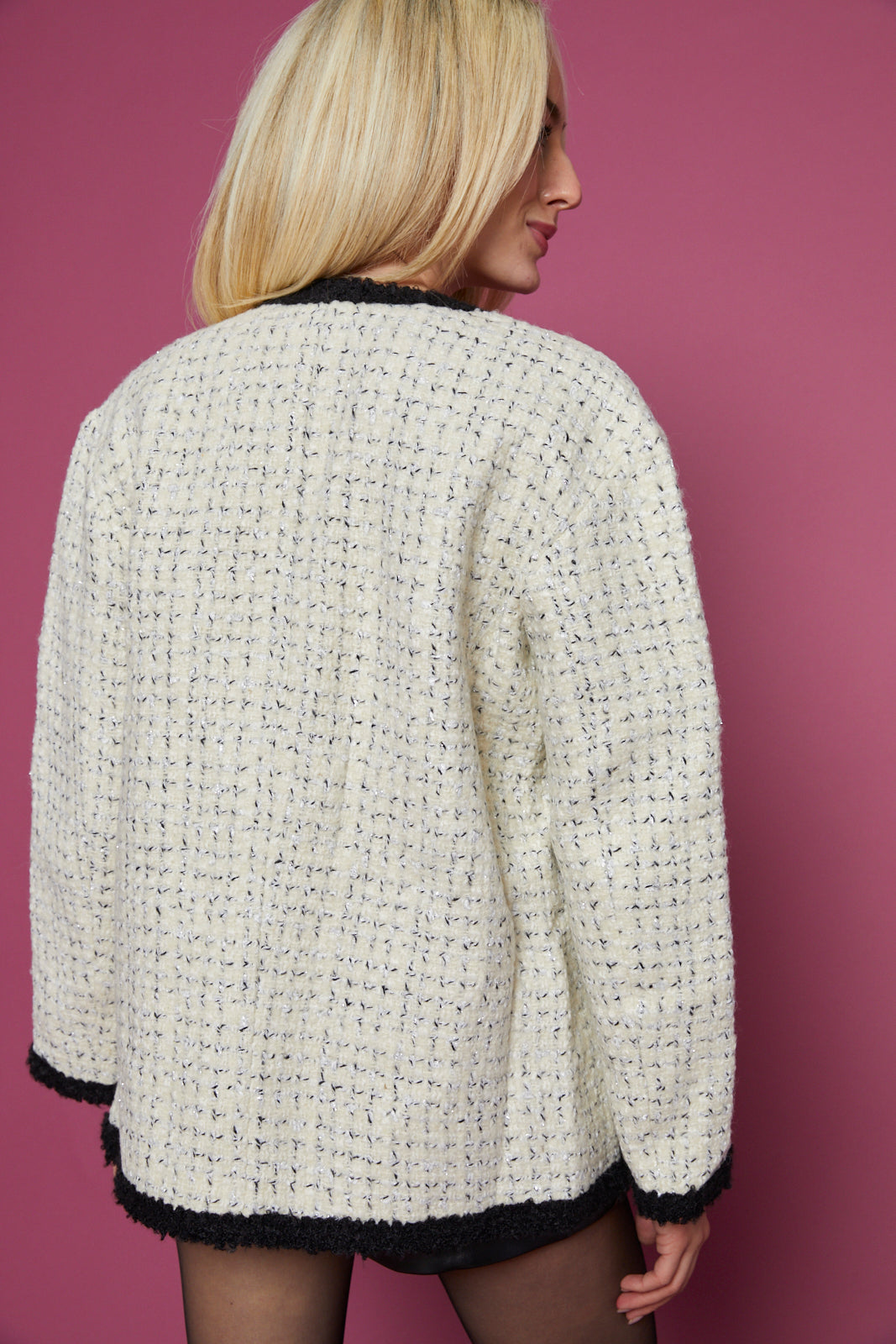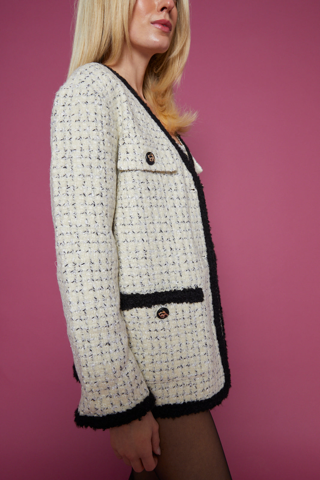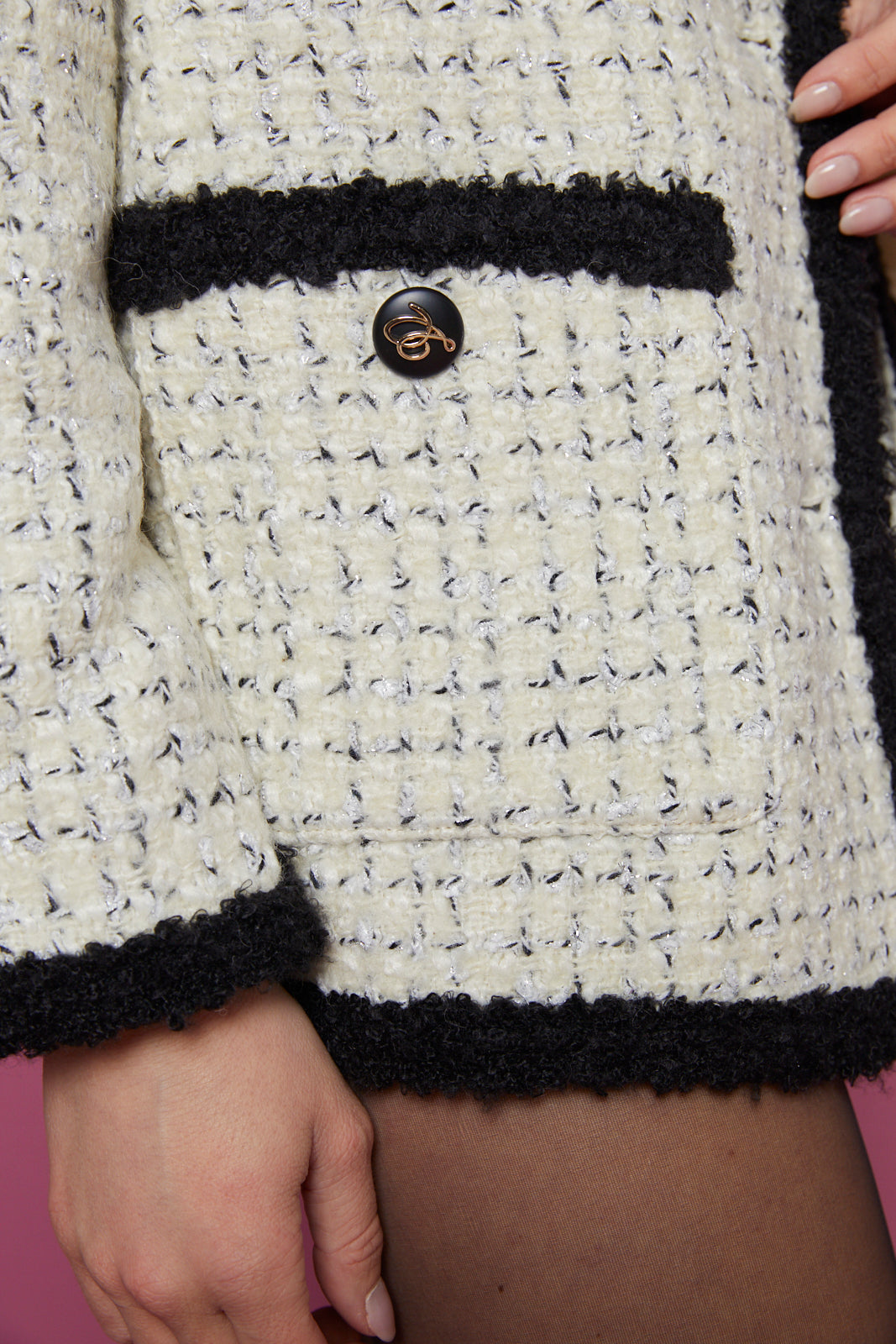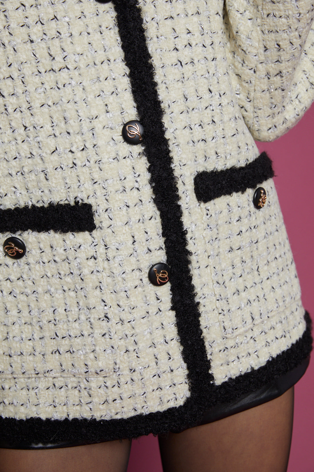 Self: 50% Wool, 50% Polyester / Lining: 95% Polyester, 5% Elastane / Contrast: 100% Cotton