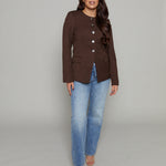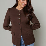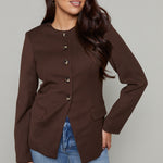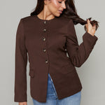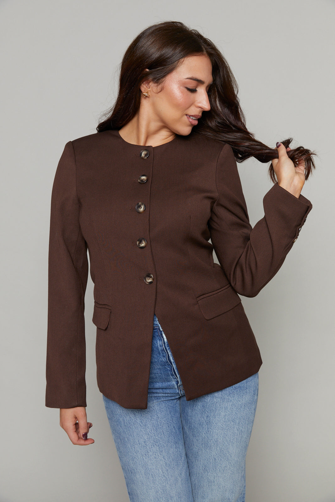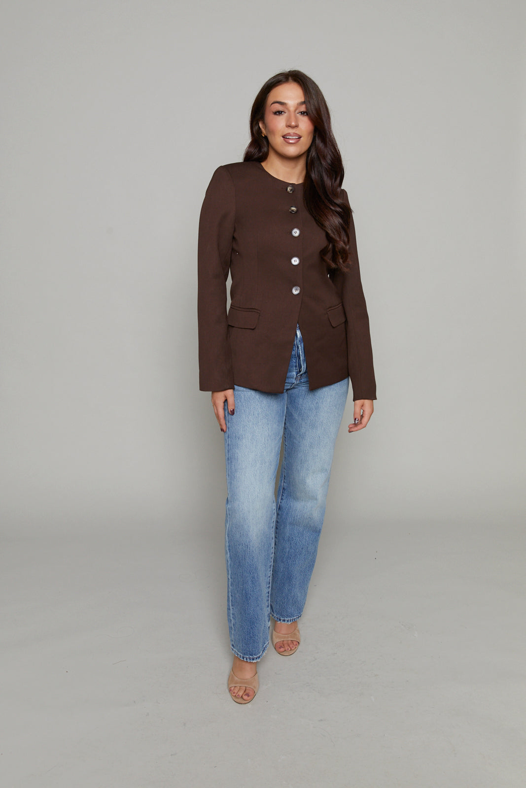 Step into a world of effortless elegance with the Sarafina Tailored Tapered Jacket. Designed to accentuate your silhouette, its sleek taper and classic front buttons create a timeless look that moves seamlessly from day to night.