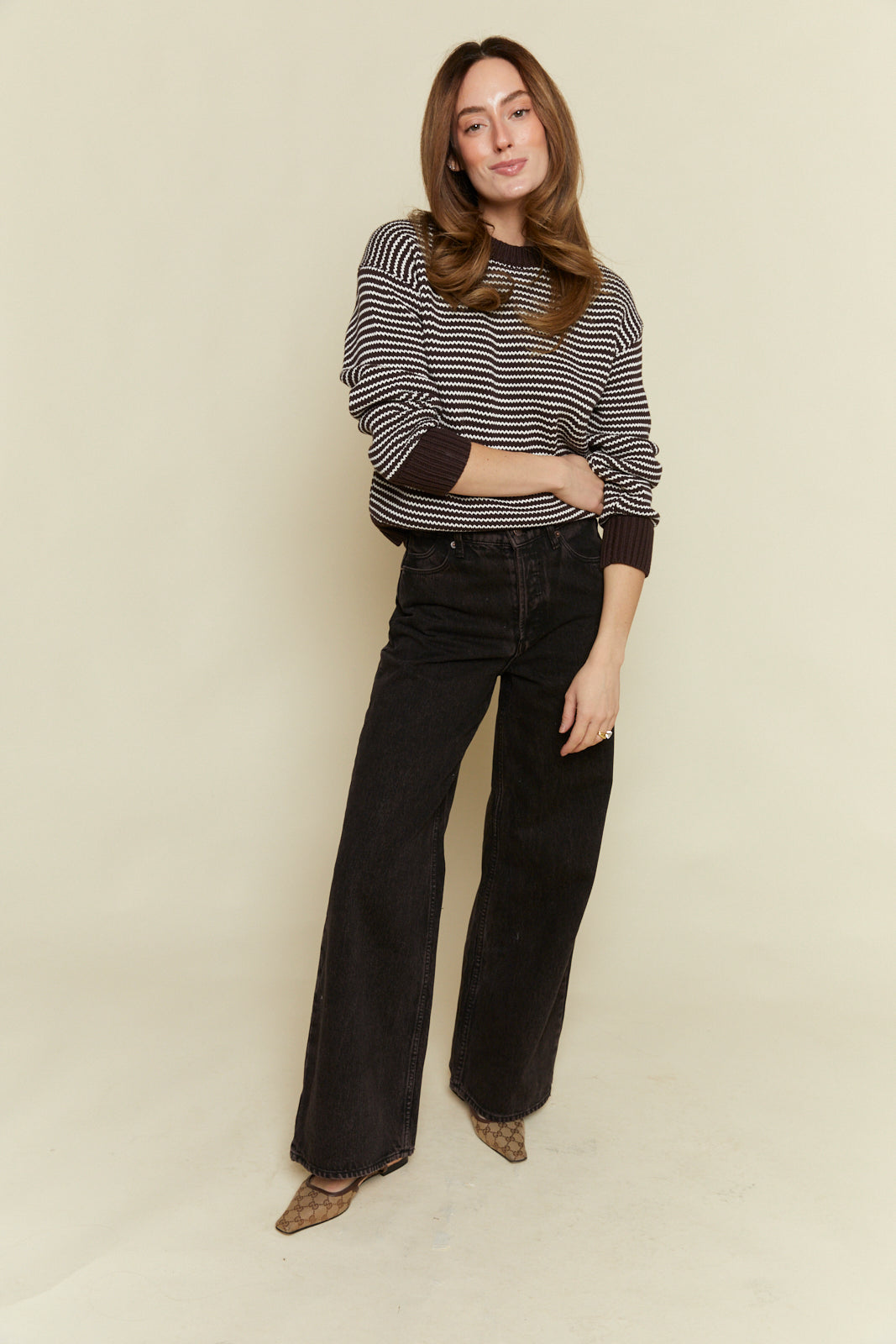 Carrington High Rise Relaxed Flared Jean - Chocolate Washed