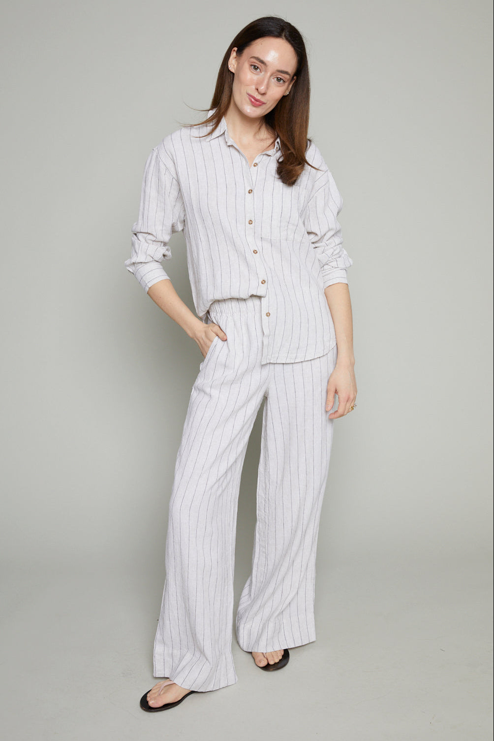 Darla Striped Linen Wide Leg Pants