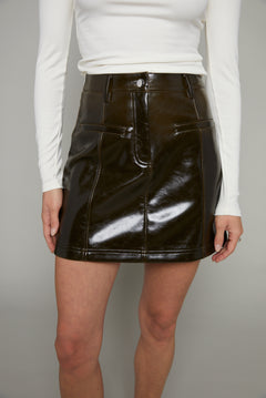 Eliza Faux Vinyl Leather Bomber Jacket - Kaki