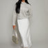 Crafted from smooth, lustrous satin, this high-rise midi skirt brings an elevated touch with a scalloped lace hem. The pull-on silhouette offers comfort and polish in equal measure, perfect for holiday dinners, cocktail hours, and everything in between.