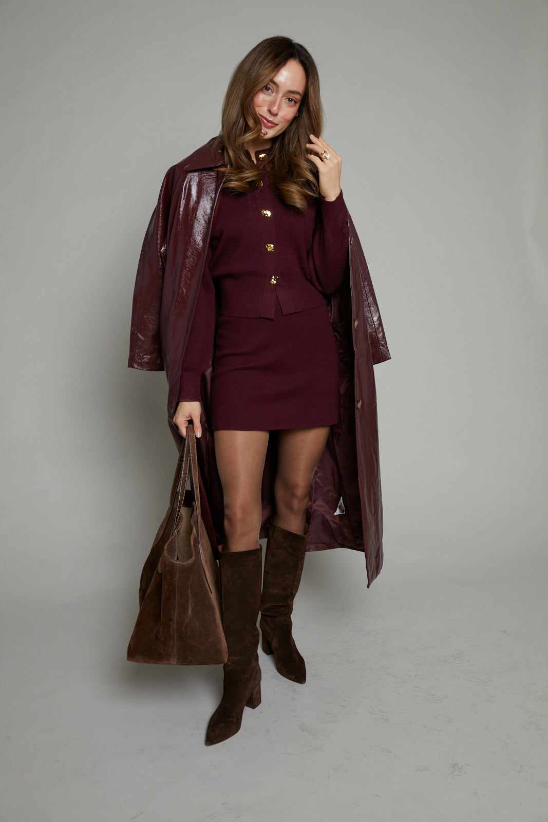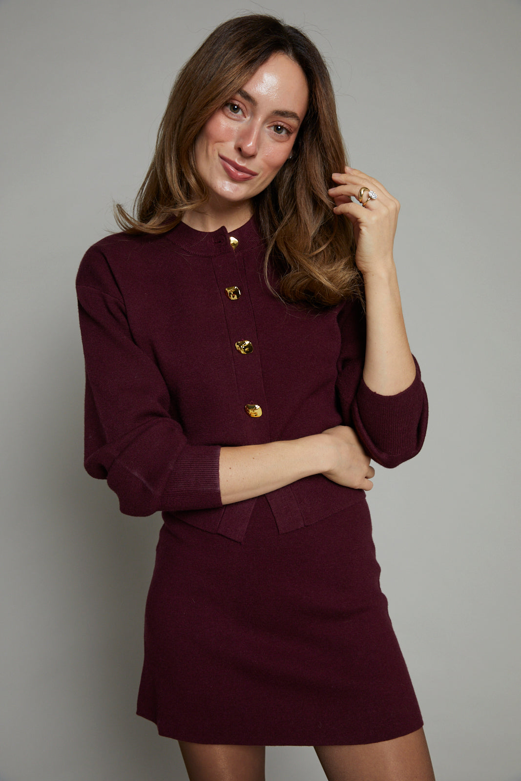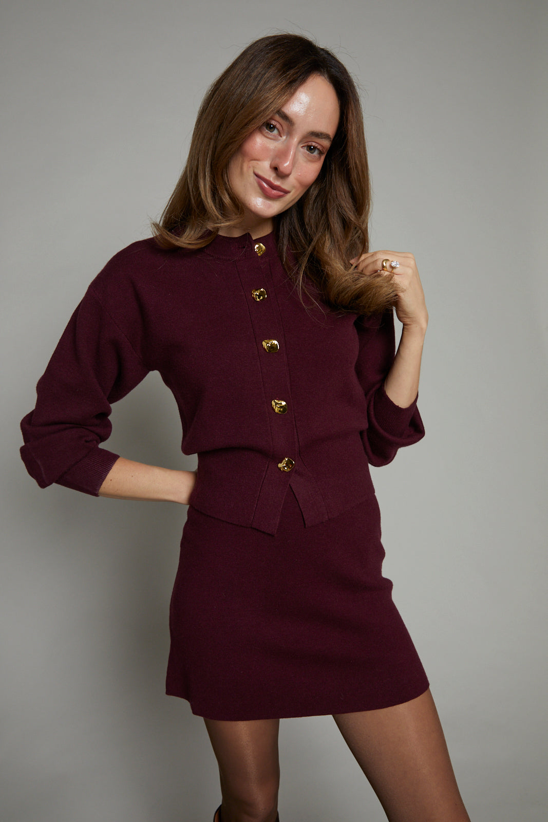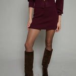 This knit mini skirt balances polish and play, perfect for brunch, workdays, or styled with its matching cardigan for a refined look.