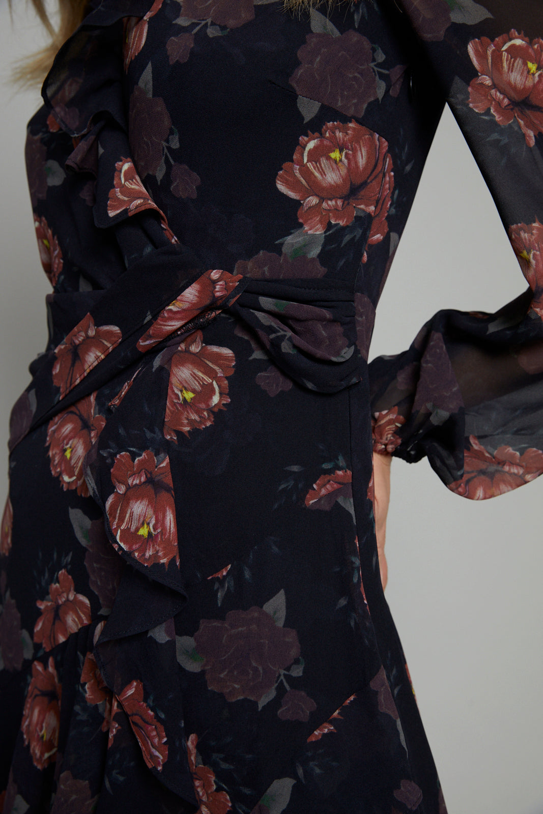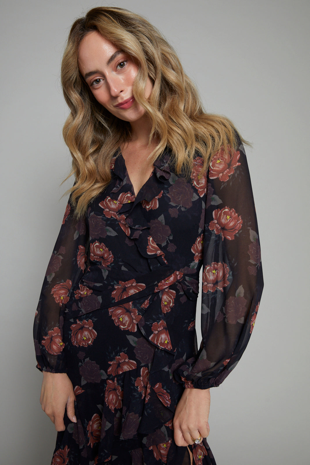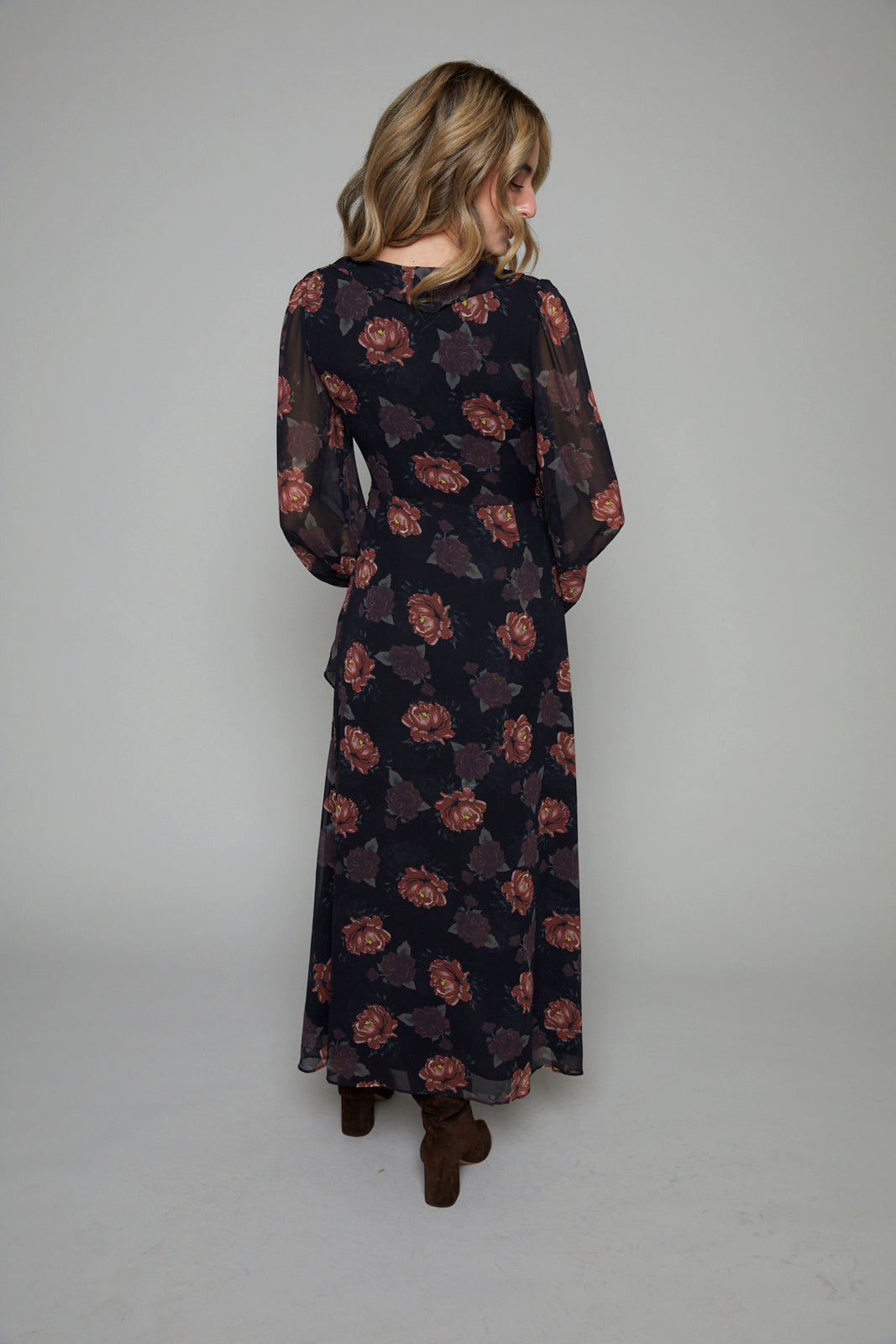 Delicate ruffles add texture and a touch of romantic charm to this maxi length dress. Perfect for weddings, fancy dinners, or any occasion where you want to feel beautiful without trying too hard.