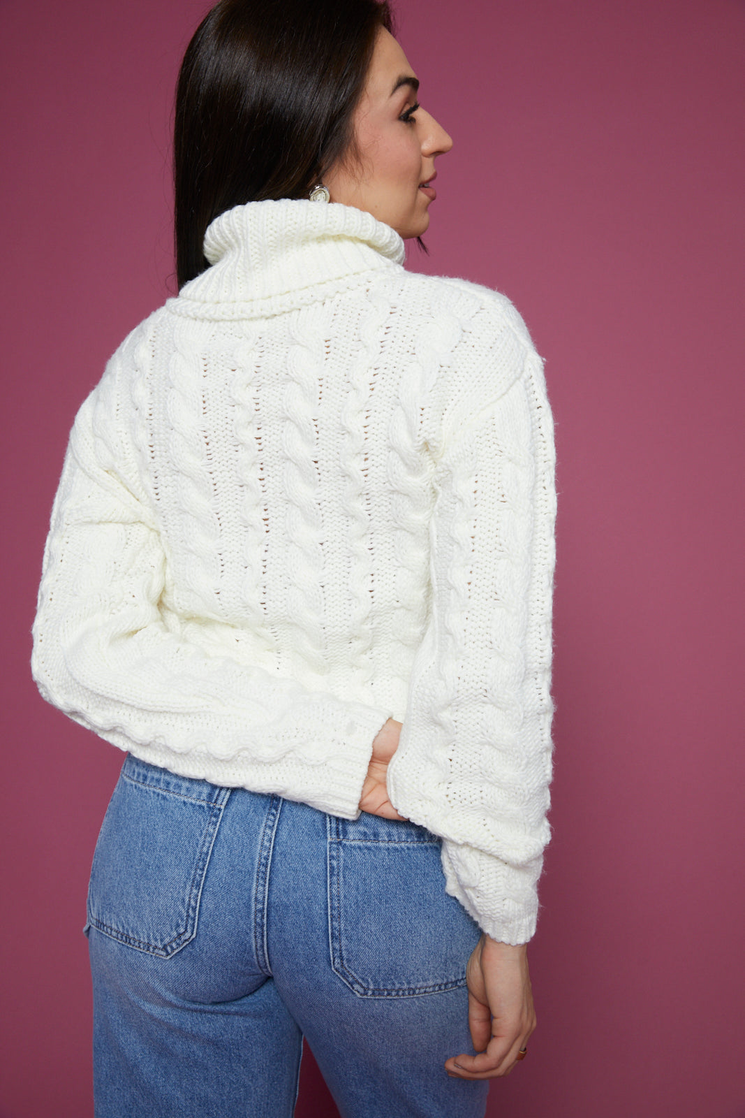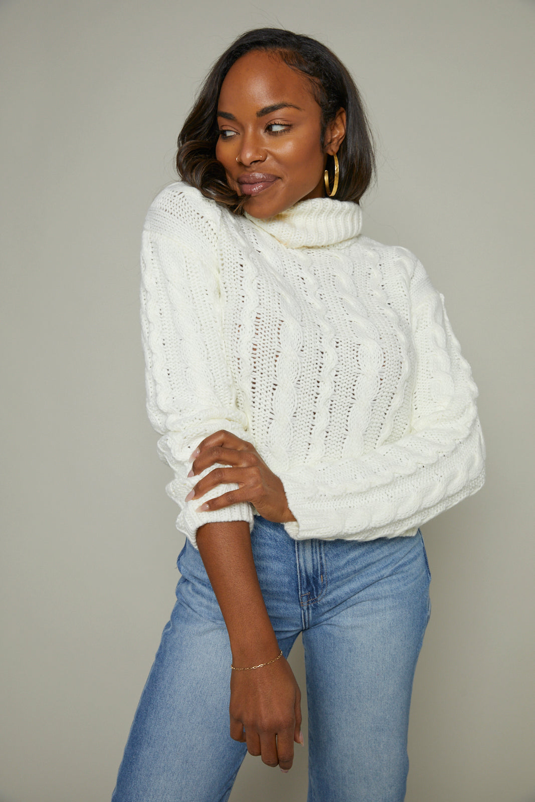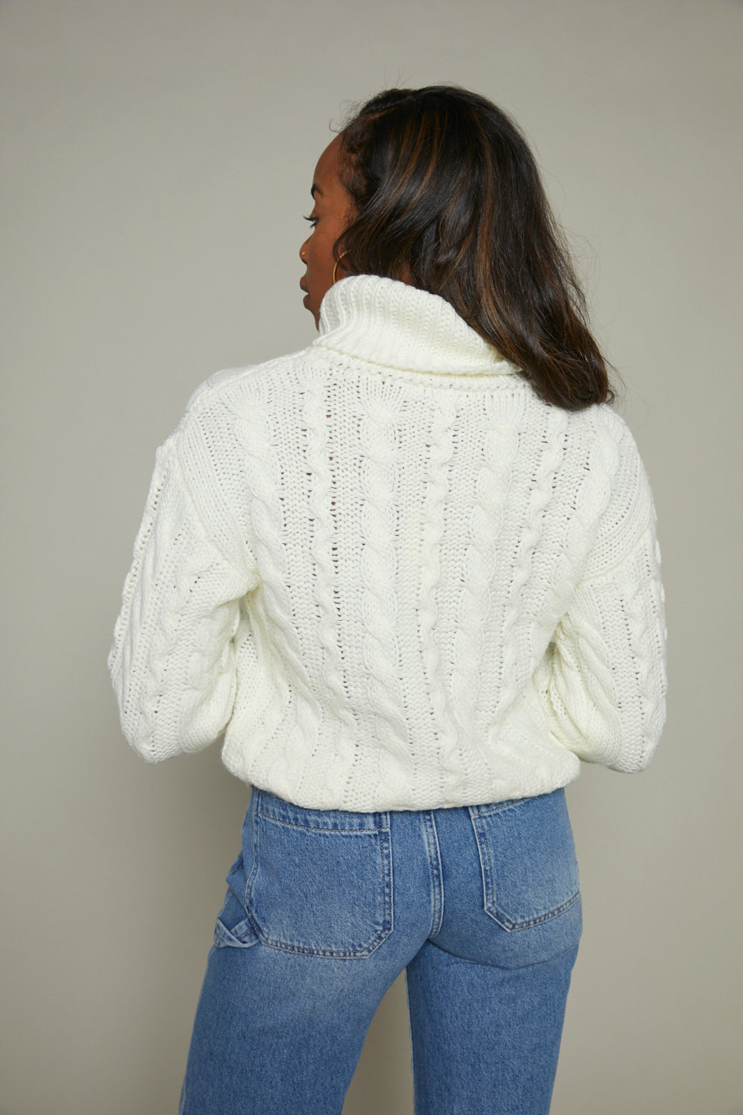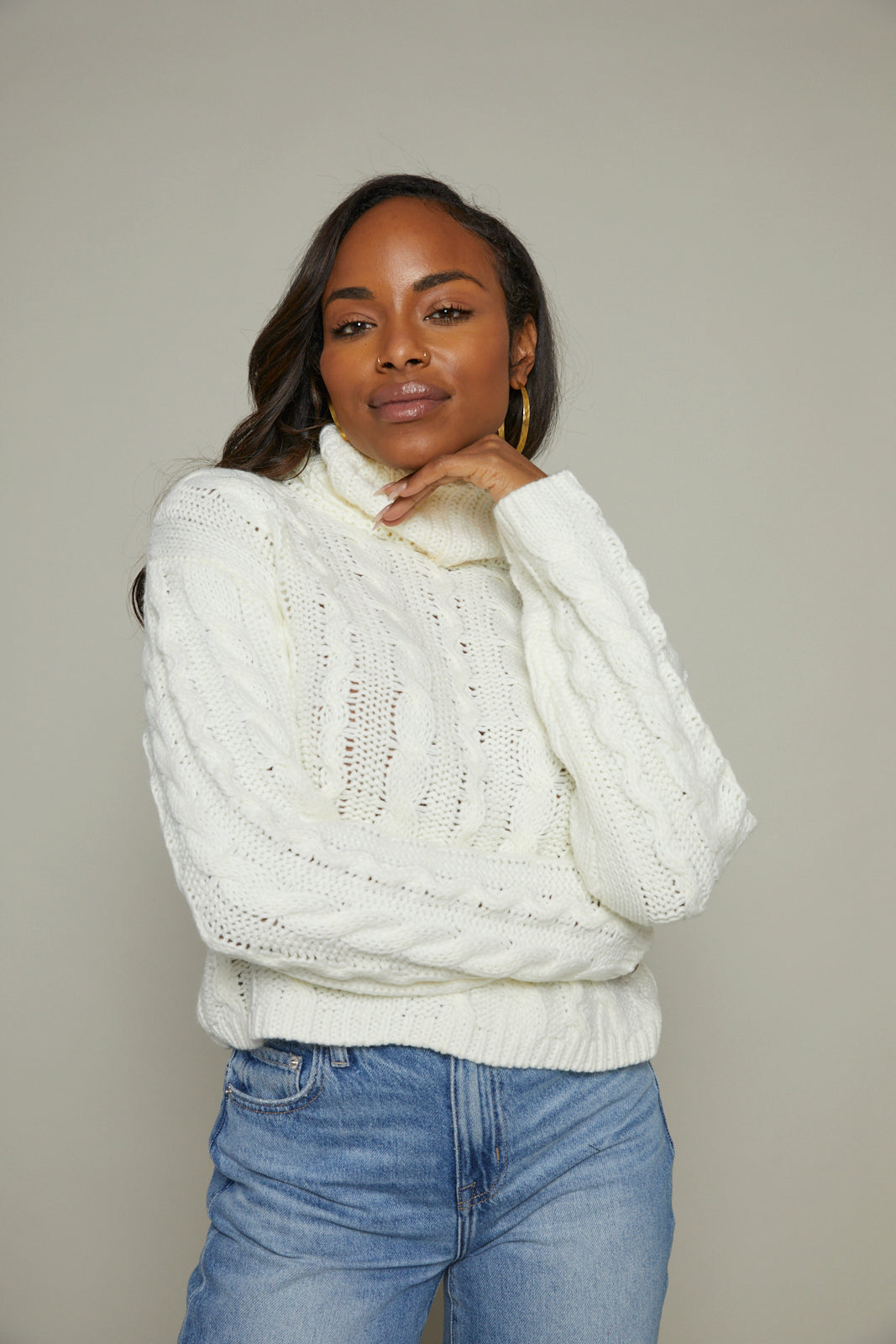 Alaina Cable Knit Turtleneck - Sea Salt