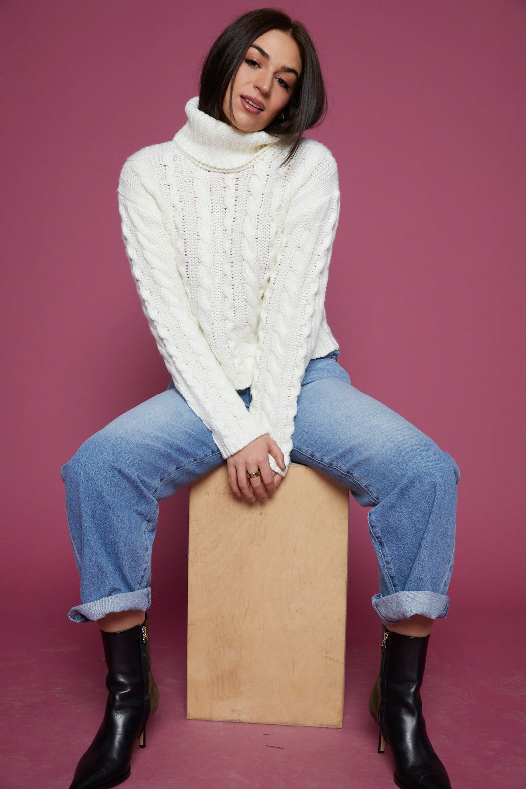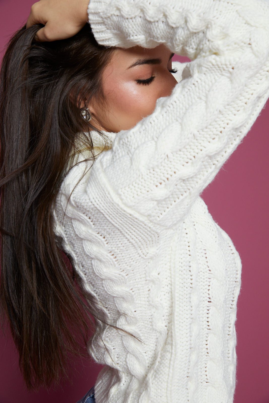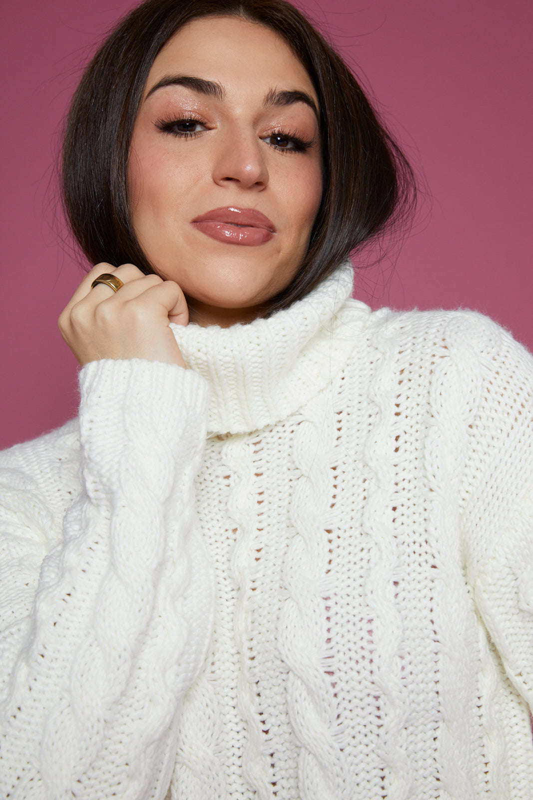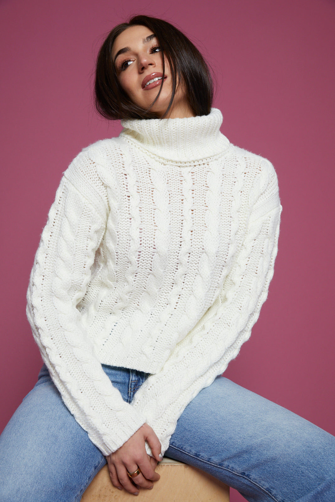 Alaina Cable Knit Turtleneck - Sea Salt