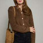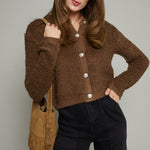 Soft, sweet, and irresistibly cozy, this sweater the perfect layer for chilly days and relaxed weekends. Crafted from plush fluffy yarns with a gentle texture and lightweight feel, this cardigan adds warmth without the bulk. The crew neckline and button-front design give it a classic look, while the relaxed fit makes it easy to pair with jeans, dresses, or your favorite lounge pieces.
