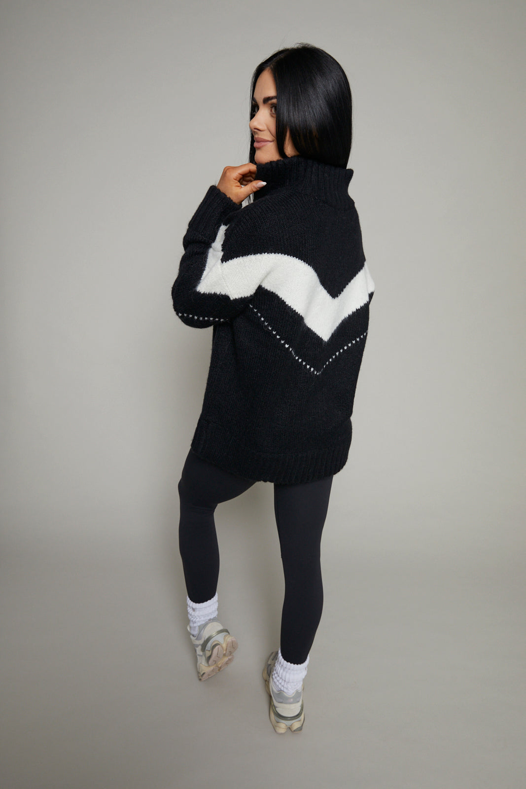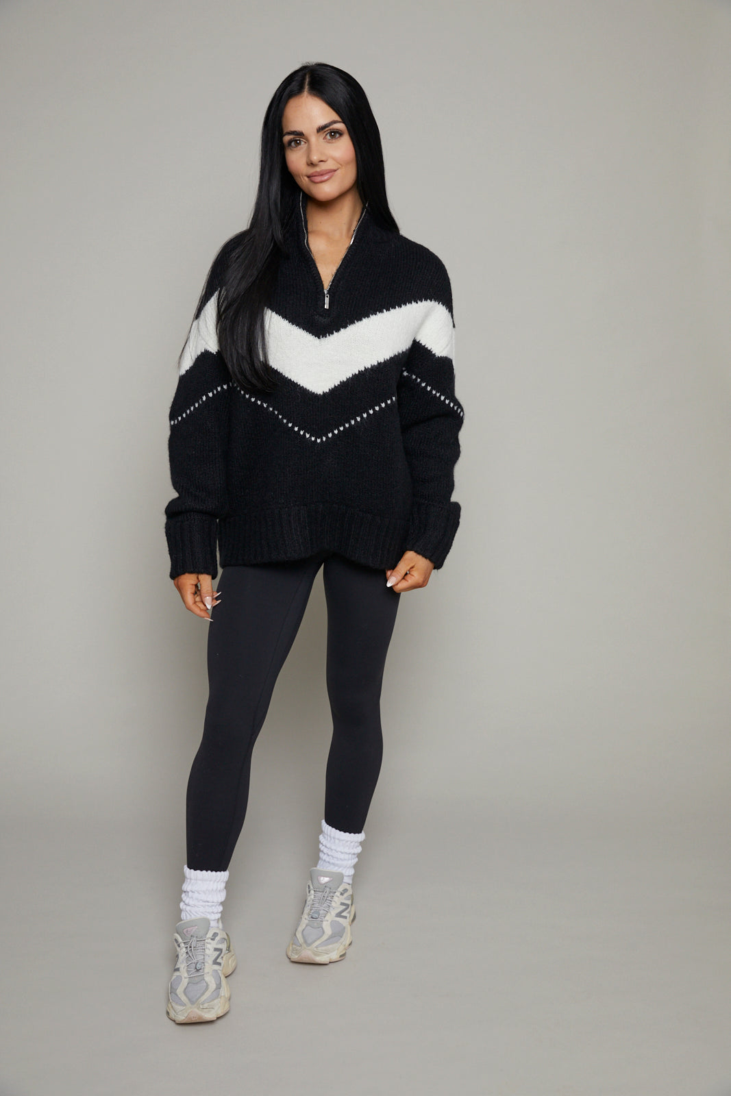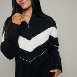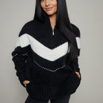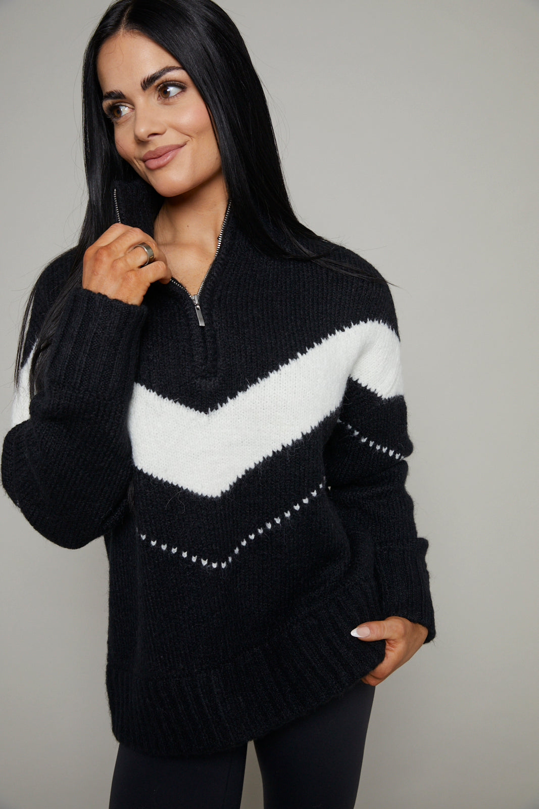 A modern knit with graphic appeal, Brittney features a relaxed silhouette and half-zip neckline. The bold chevron colorblock pattern in Black Vanilla Ice delivers contrast and dimension while keeping the look timeless and versatile.