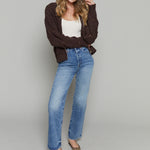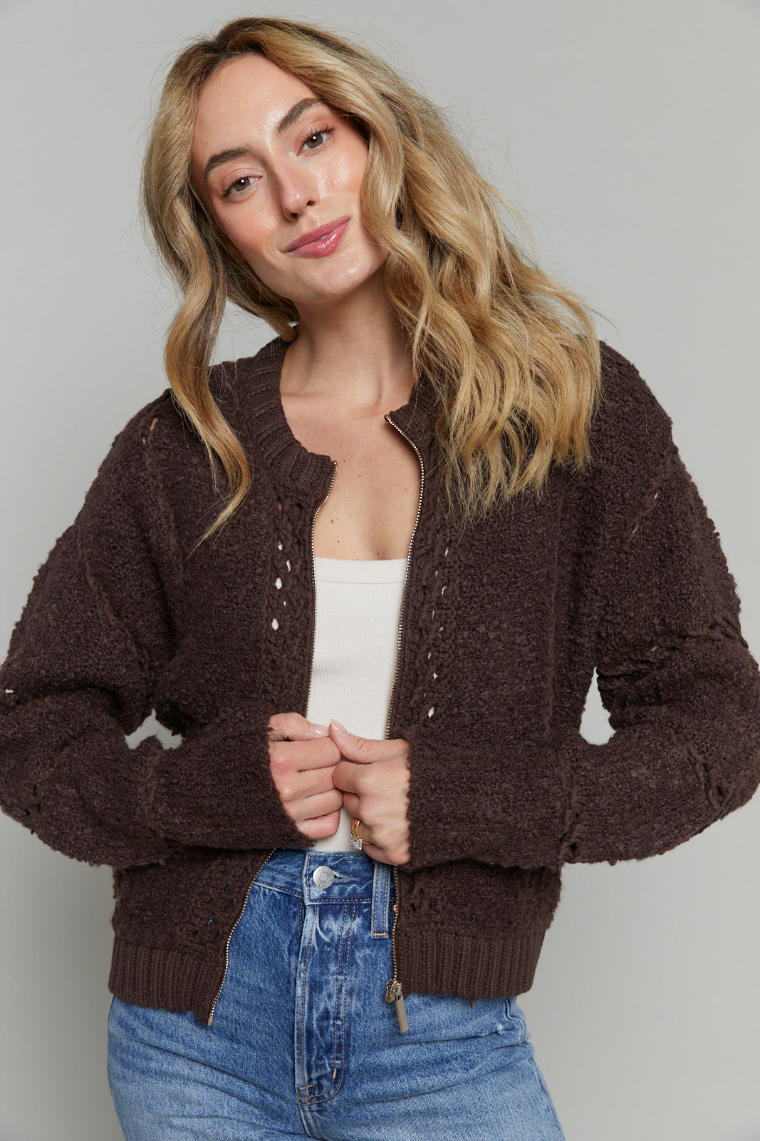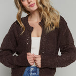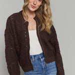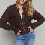 Gwen Zip Up Sweater Jacket - Chocolate Cherry